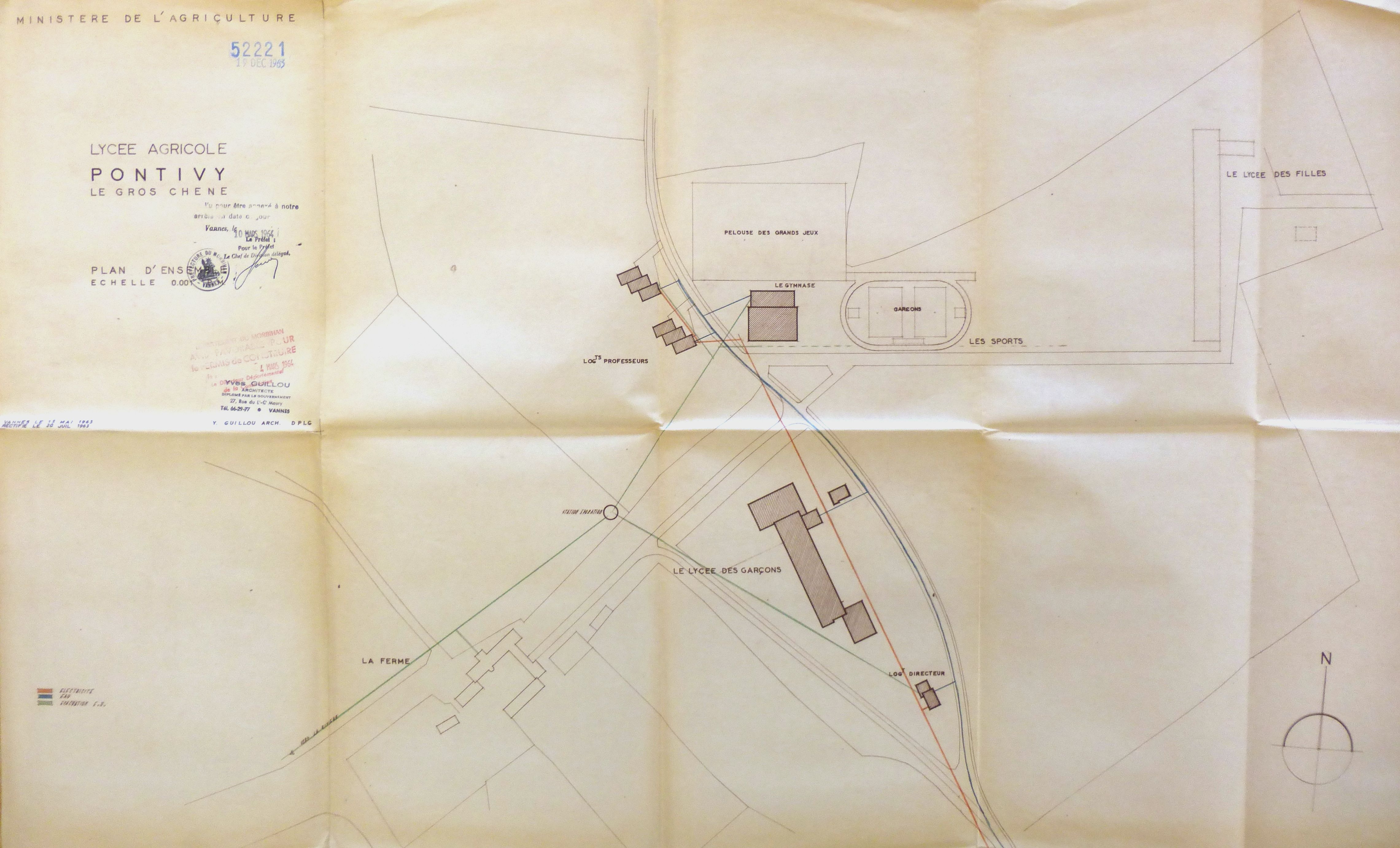AD Morbihan : 88 W 72. Plan d'ensemble. Y. Guillou, 1963.