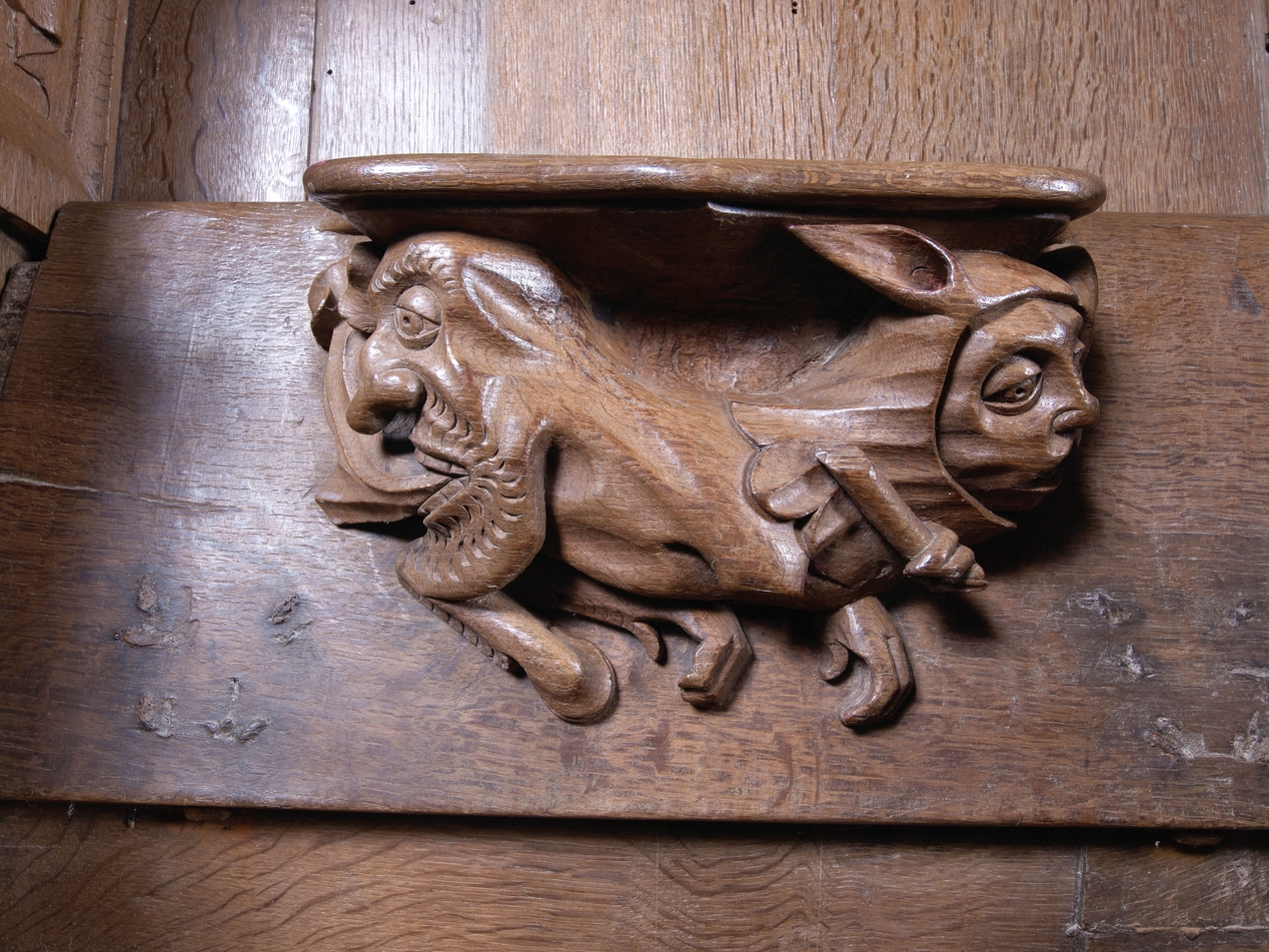 Détail de l'une des stalles : un monstre hybrideImmatriculation