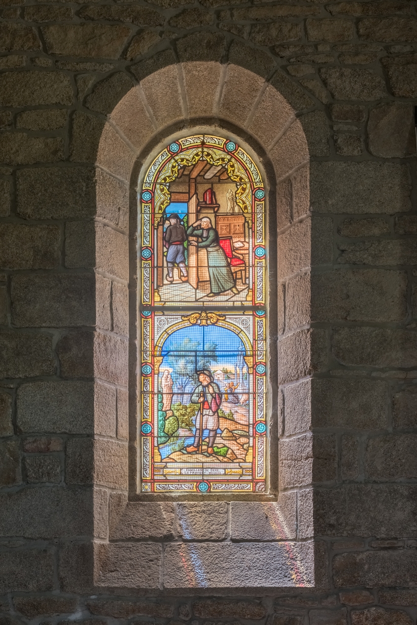 Ensemble de 8 verrières à personnages des baies 1 à 8 : Miracles de Notre-Dame du Guiaudet,