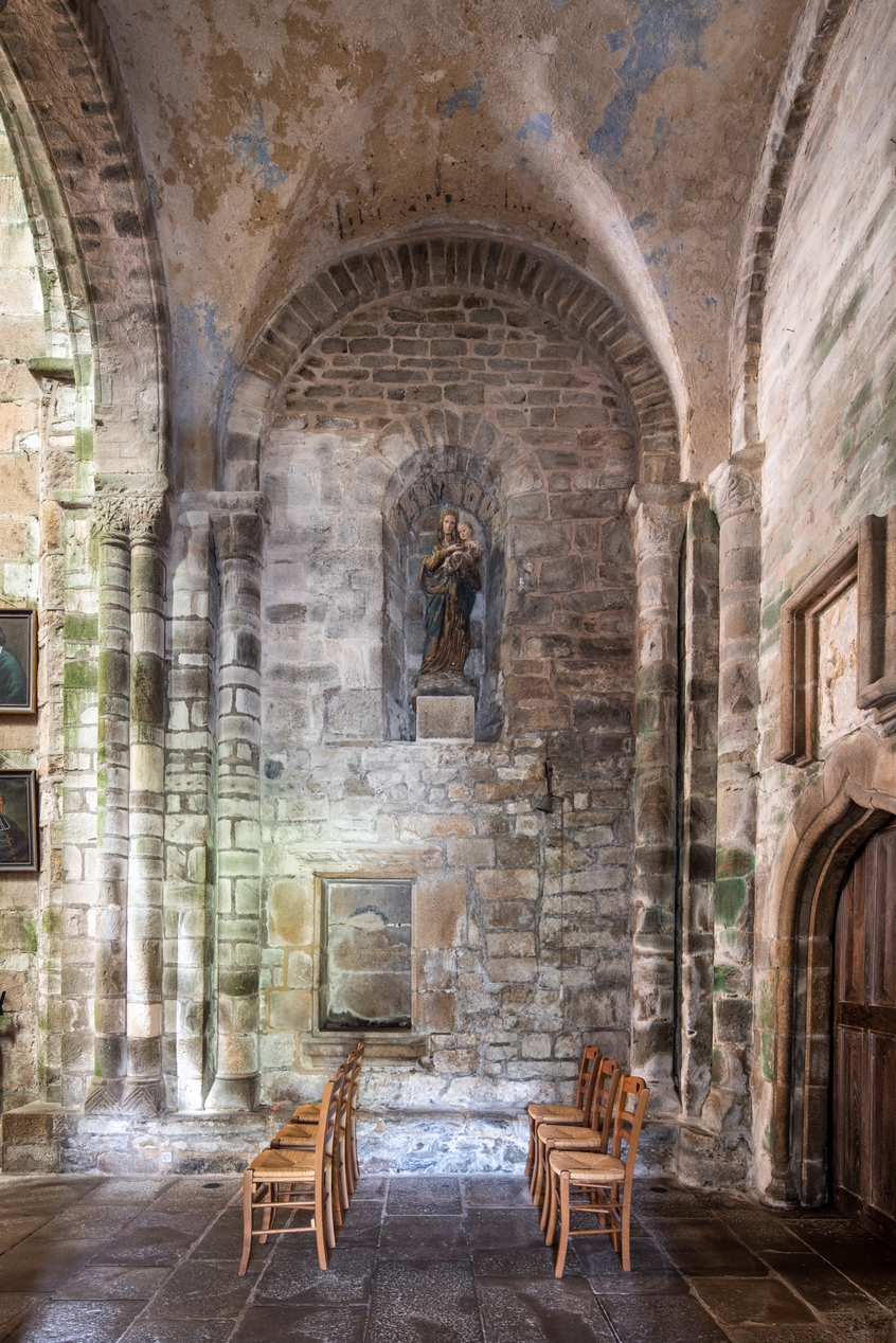 Elévation ouest de la tour Hasting, baie romane et armarium où étaient rangés les livres d'usage liturgiqueImmatriculation