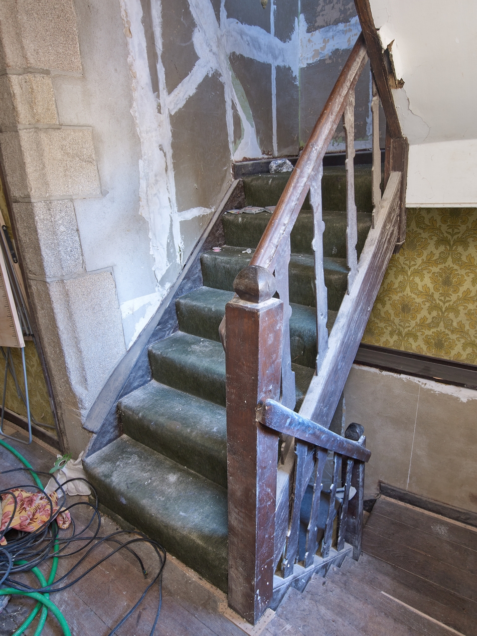 9 rue Colvestre : maison, rez-de-chaussée, détail de l'escalier (état en 2020)Immatriculation