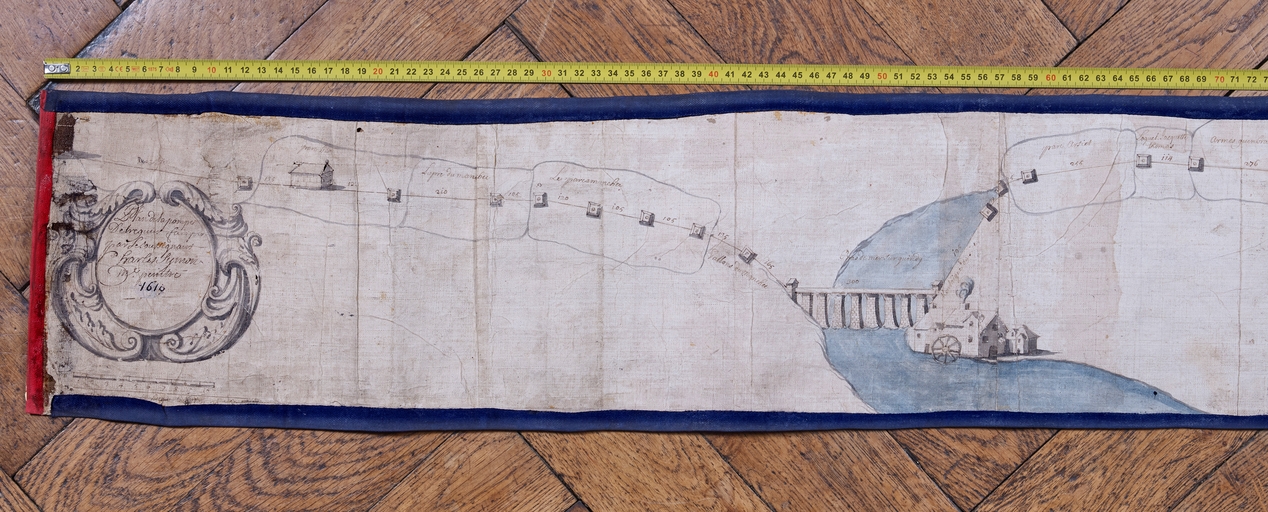 Détail du plan de la conduite d'eau de la ville de Tréguier par Charles Symon, maître peintre, 1610 (Archives communales de Tréguier de Tréguier, 1Fi8)Immatriculation