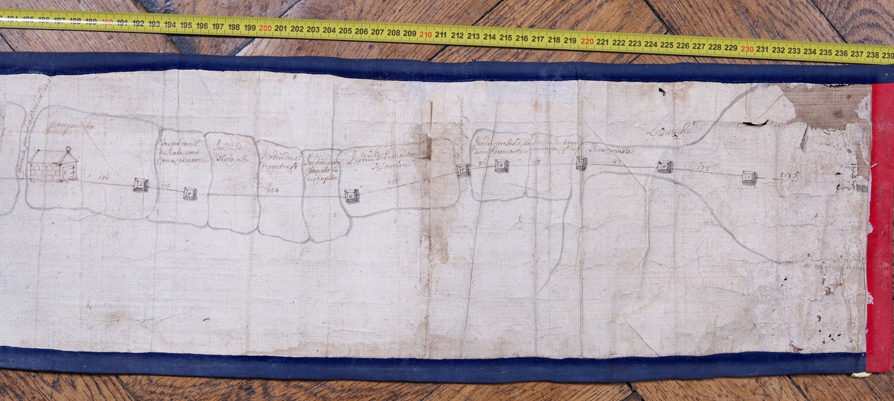 Détail du plan de la conduite d'eau de la ville de Tréguier par Charles Symon, maître peintre, 1610 (Archives communales de Tréguier, 1Fi8)Immatriculation