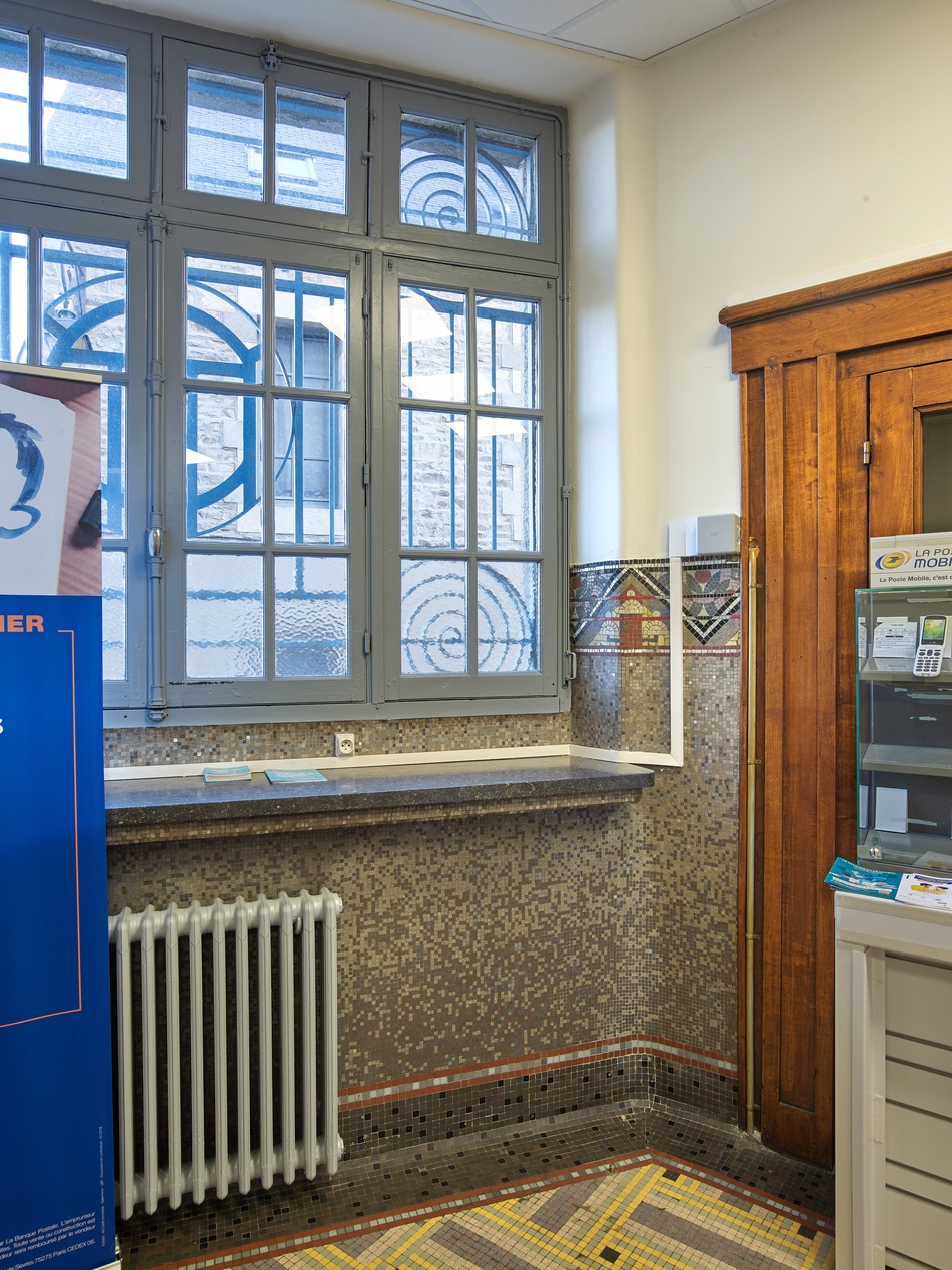 Fenêtre à trois battants et lambris de hauteur orné de mosaïquesImmatriculation
