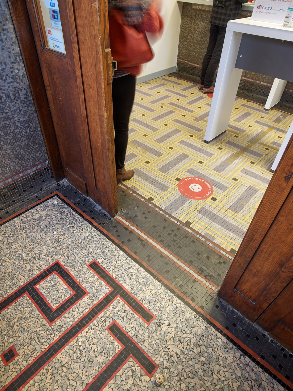 Sas d'entrée. Détail du seuil orné de mosaïquesImmatriculation