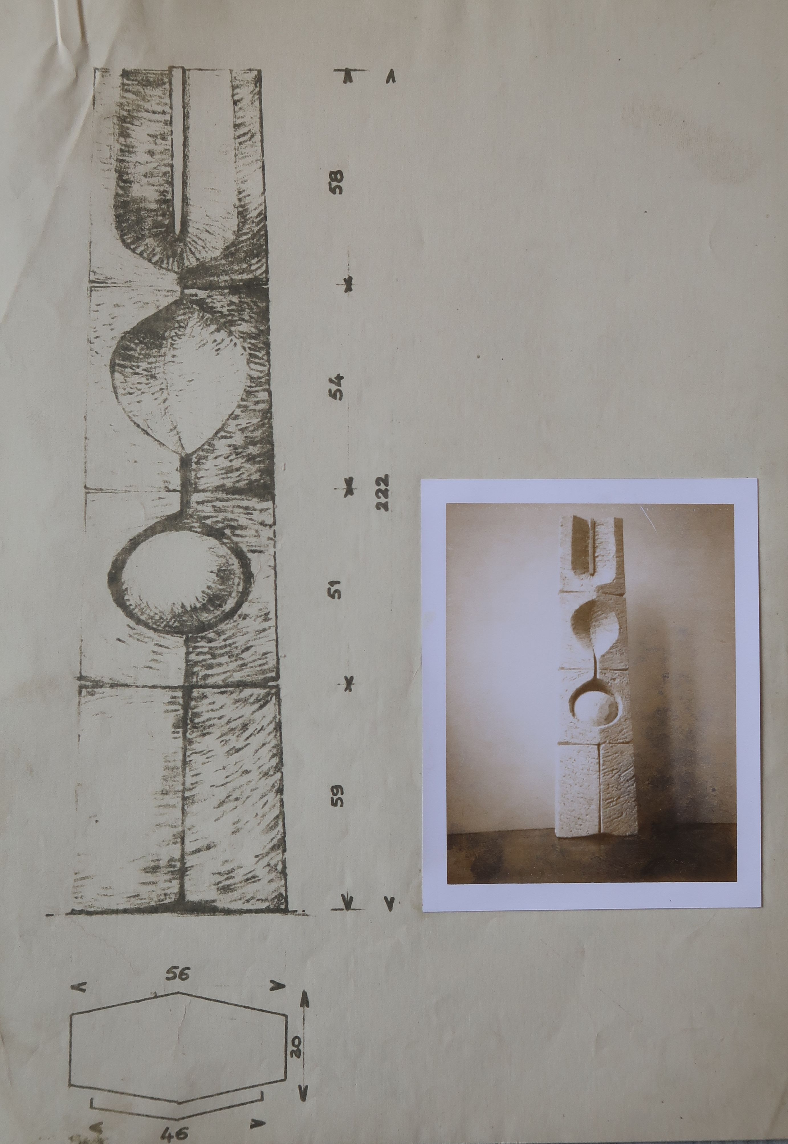 Archives municipales de Quimper : 1078 W 149. Vélon P.], Sans titre, maquette de la sculpture in Décoration artistique, 1975.