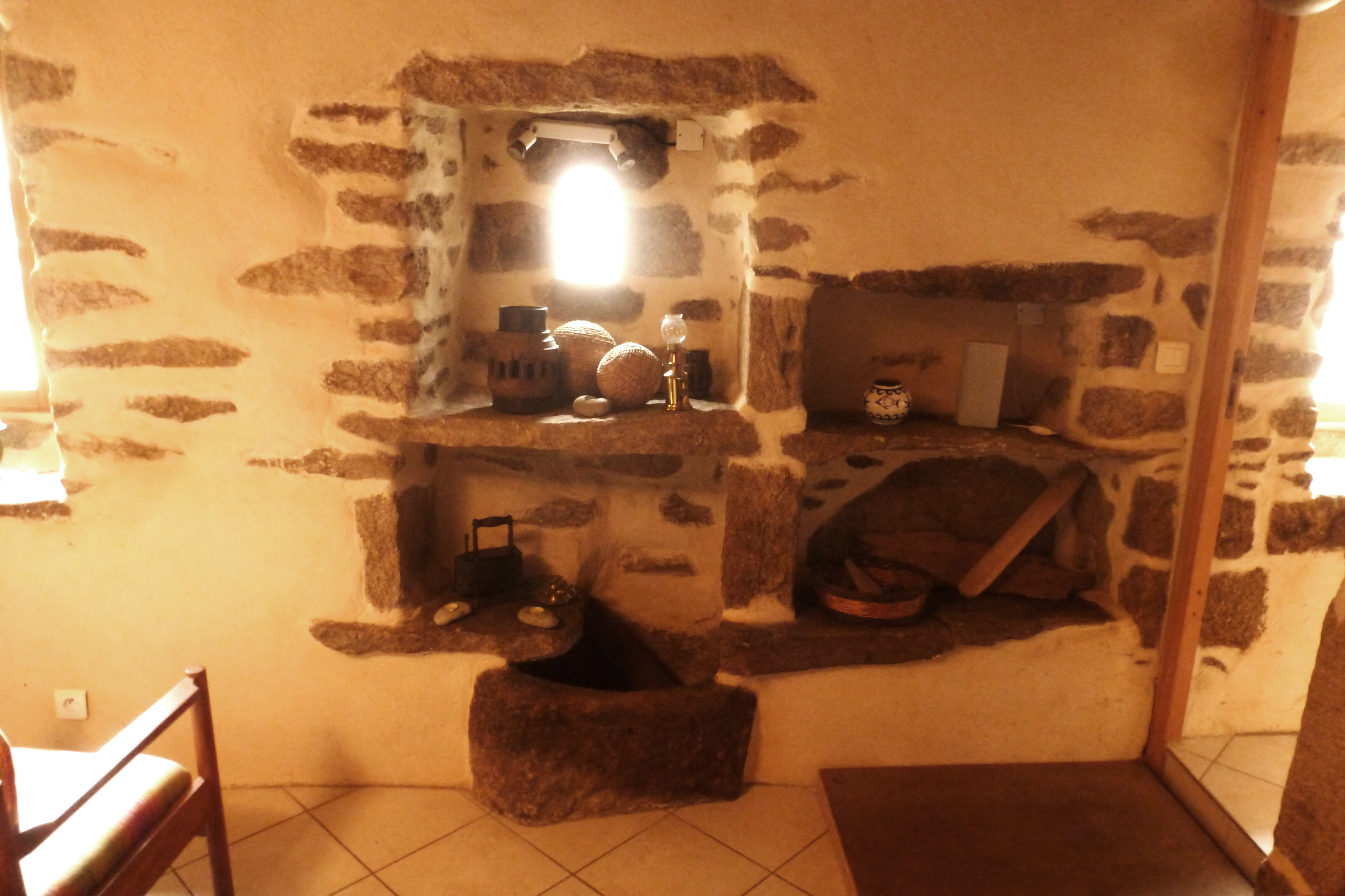 Logis, mur sud, détail des placards muraux et auge à eau.Immatriculation