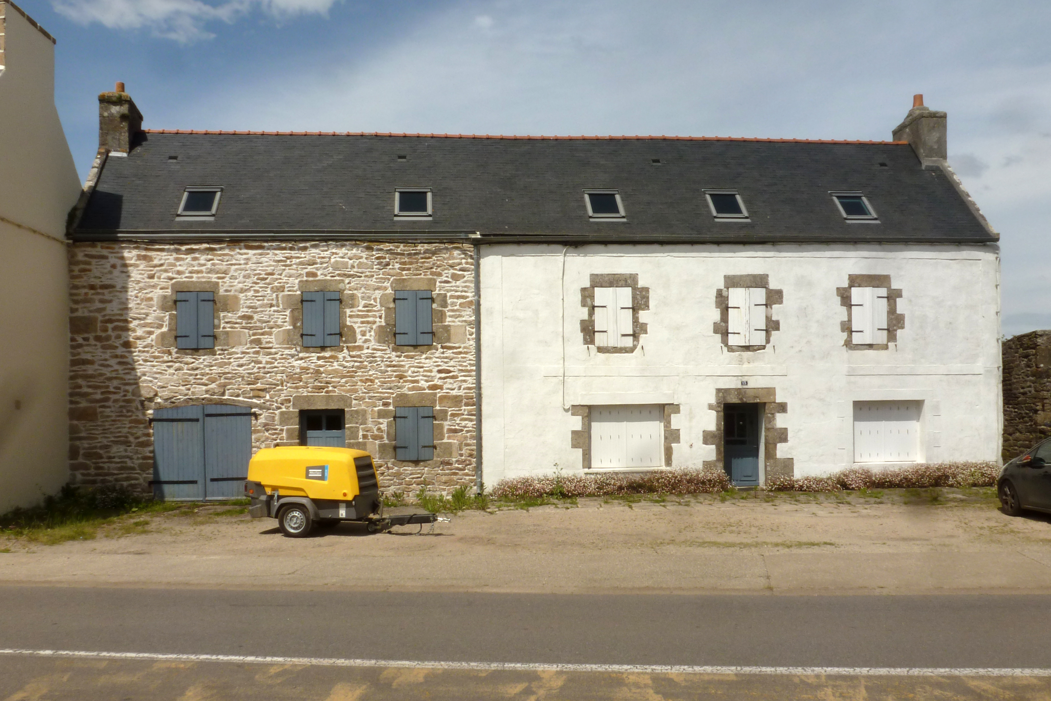 Alignement de deux maisons au nord de l'église, élévation antérieure. (2020)Immatriculation