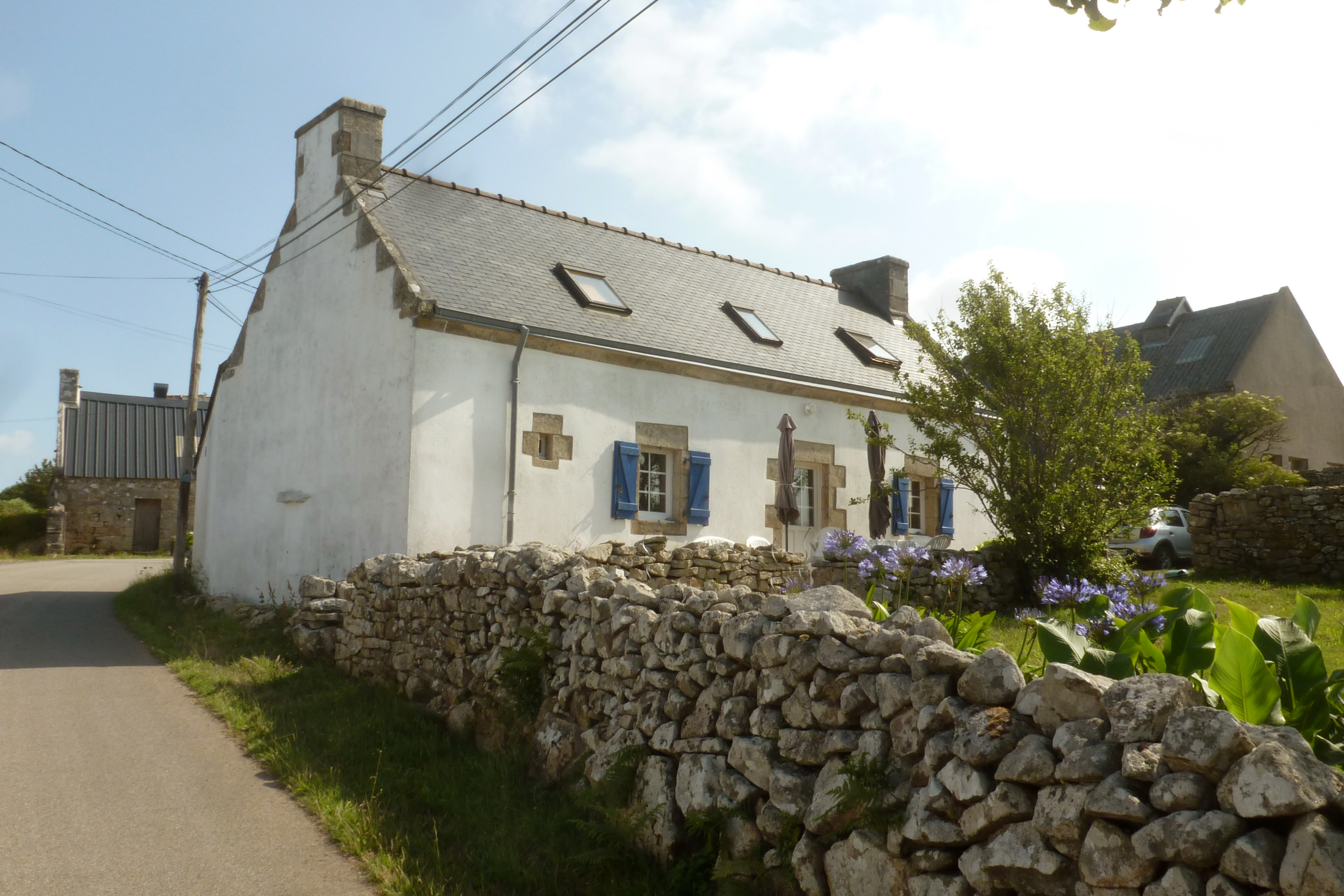 Mesperleuc, maison 1 dite "de pêcheur" et son muret d'enclos en pierres sèches. Vue générale prise du sud-ouest.Immatriculation