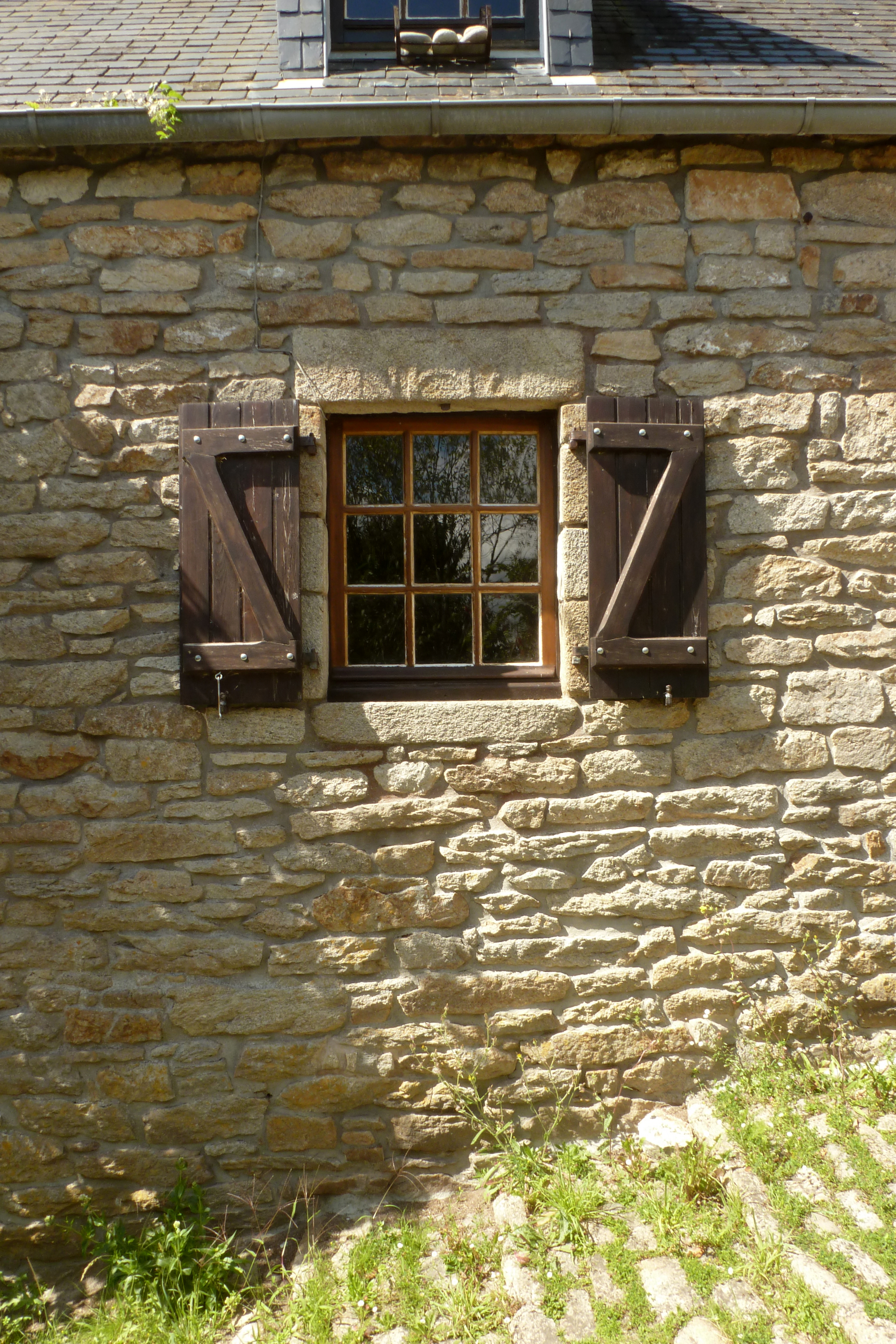 N° 18, maison à deux pièces en rez-de-chaussée, élévation antérieure est. Détail de la fenêtre sud et sigle religieux : "IHS".Immatriculation
