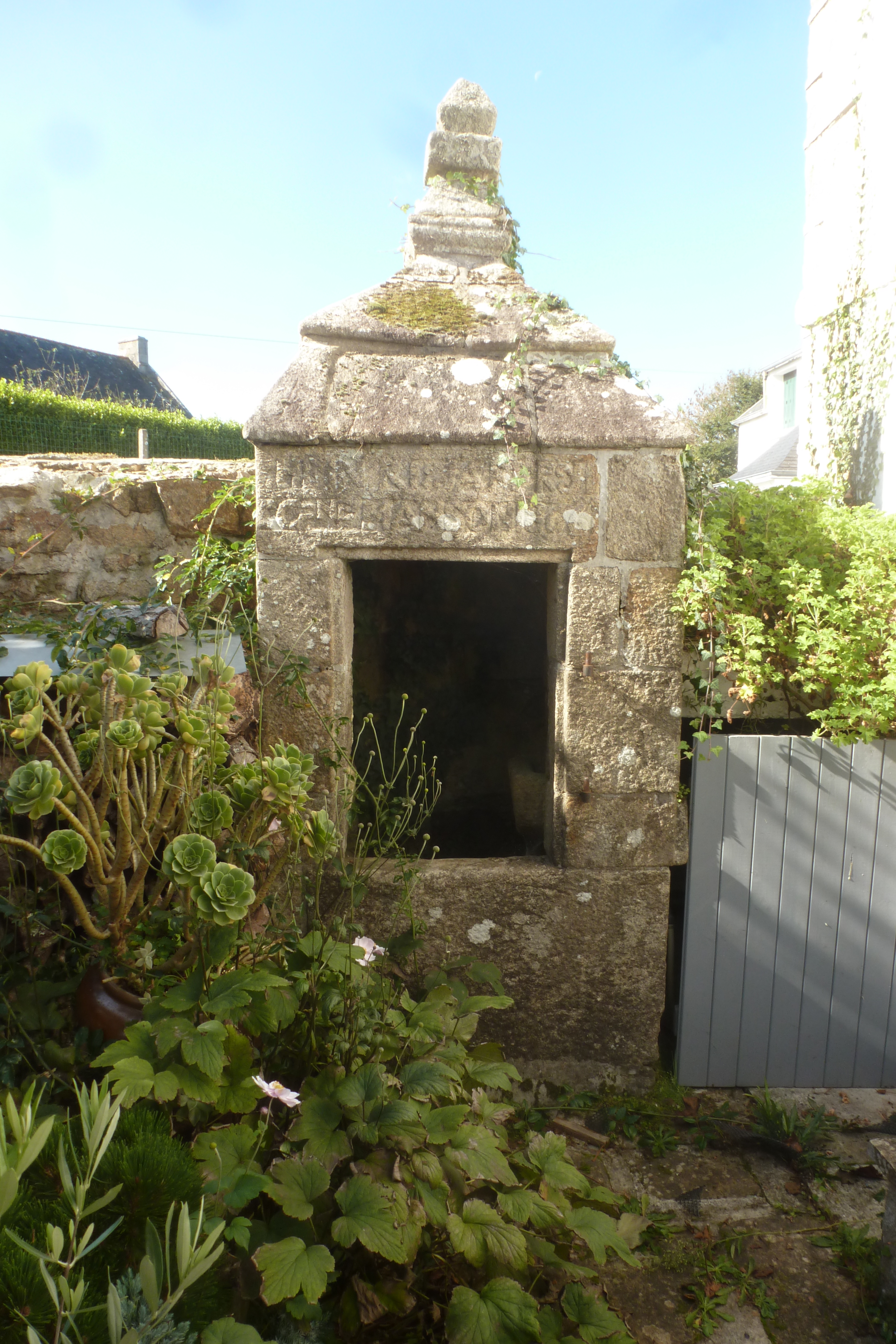 Troloan, ferme 4, puits daté 1866 et inscription HENRI JAFFRY / C(atheri)NE MANSON.Immatriculation