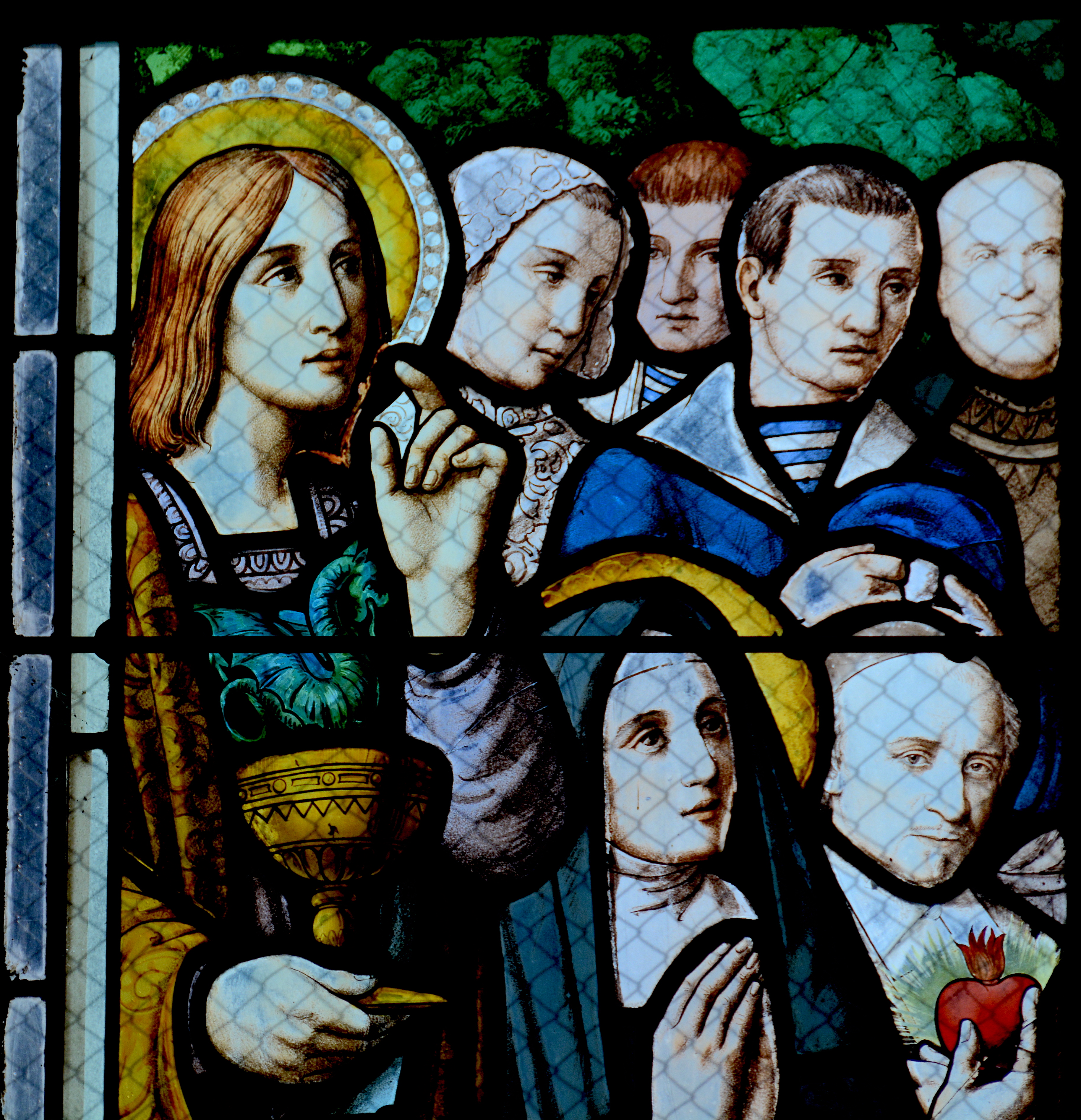 Vitrail du Sacré Coeur, détail St Jean et calice au dragon. (2020)Immatriculation