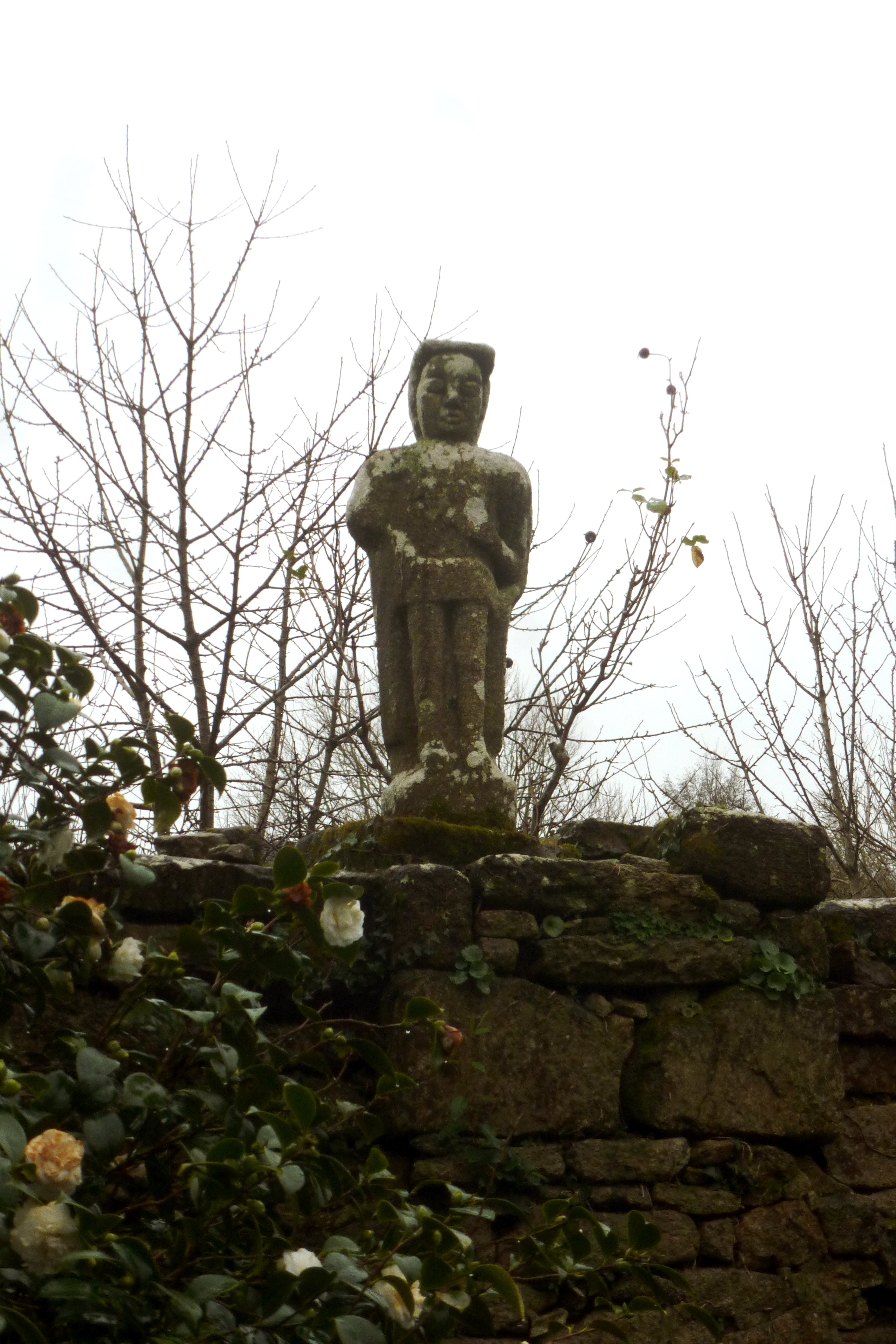 Statue de saint Maudez actuellement dans la cour de l'ancien manoir presbytéral.Immatriculation