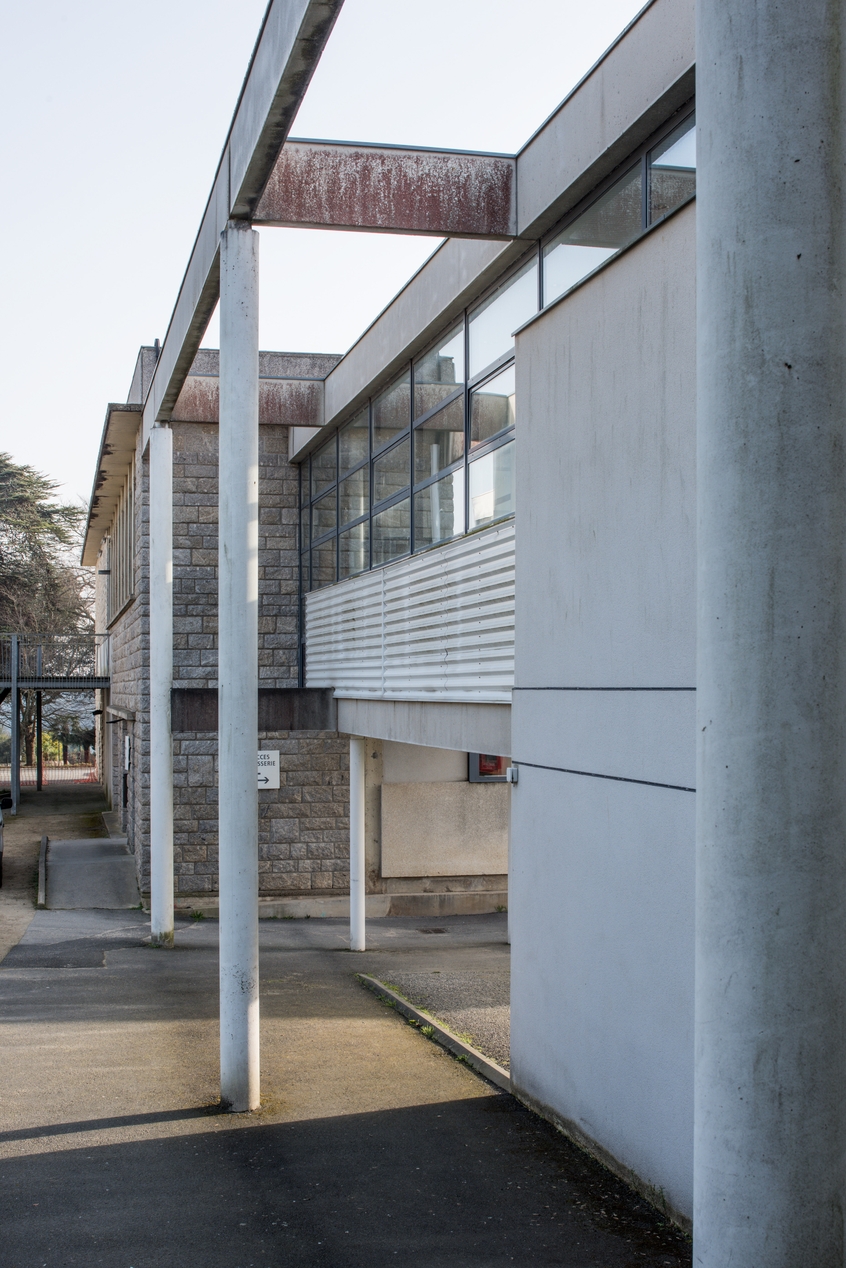 Passerelle entre le restaurant pédagogique et les ateliers.Immatriculation