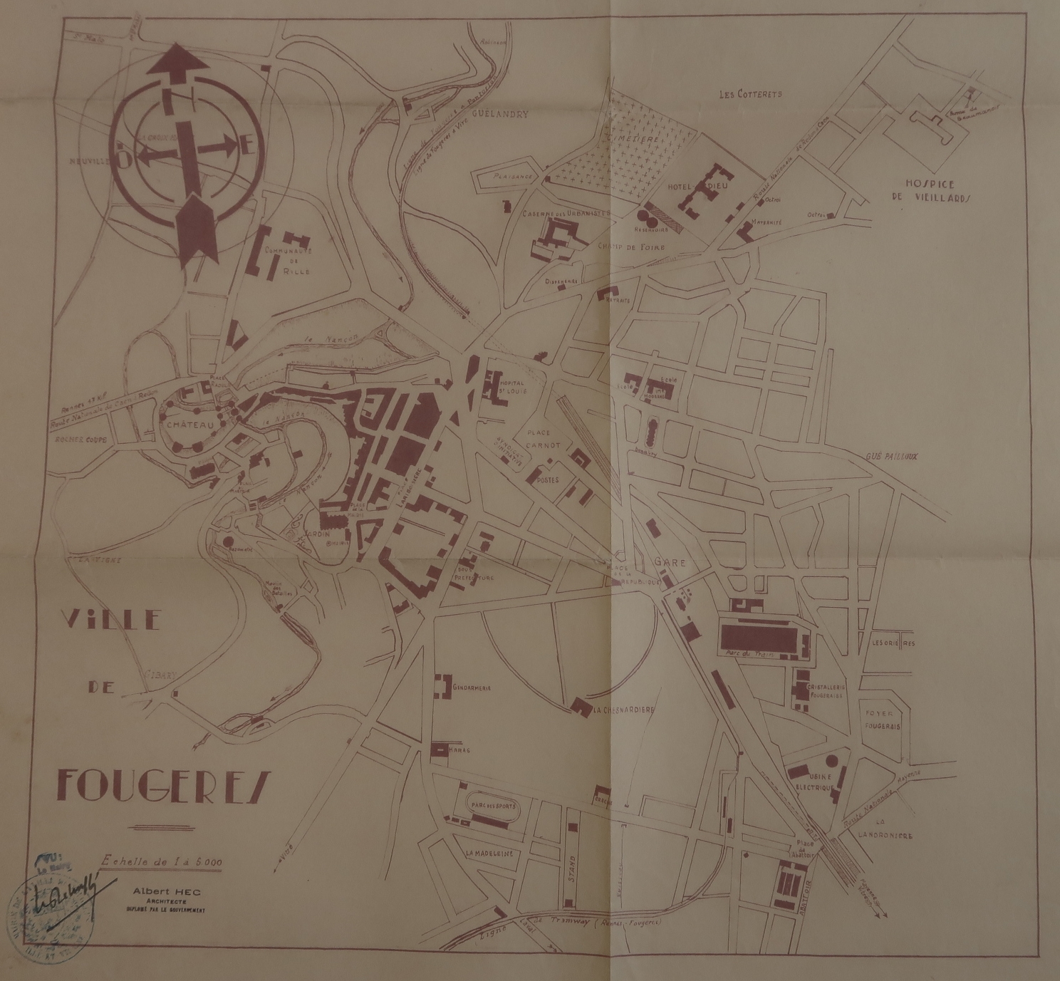 Architecte DPLG, architecte de l’Office départemental des HLM, architecte de la ville de Fougères, directeur de l’école régionale d’architecture, 17 quai Lamartine, Rennes, et 12 rue Chateaubriand, Fougères