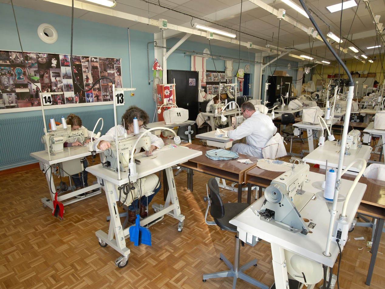 Atelier couture de la formation "tapissier" (ici, formation pour adultes).Immatriculation