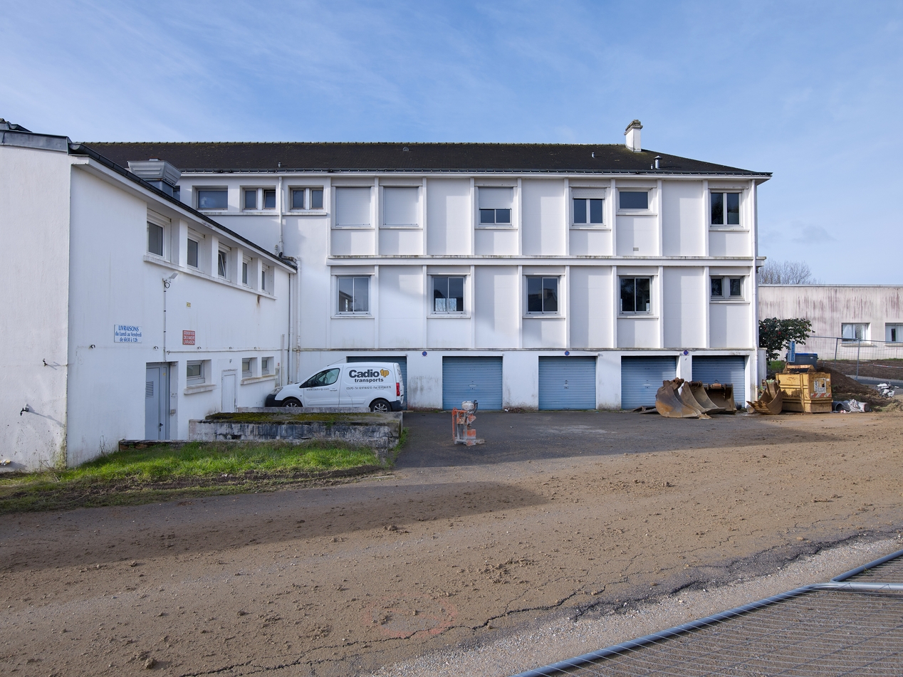 Internat (services communs), façade est, vue prise le long de la façade nord des cuisines. Yves Guillou, architecte, 1962.Immatriculation