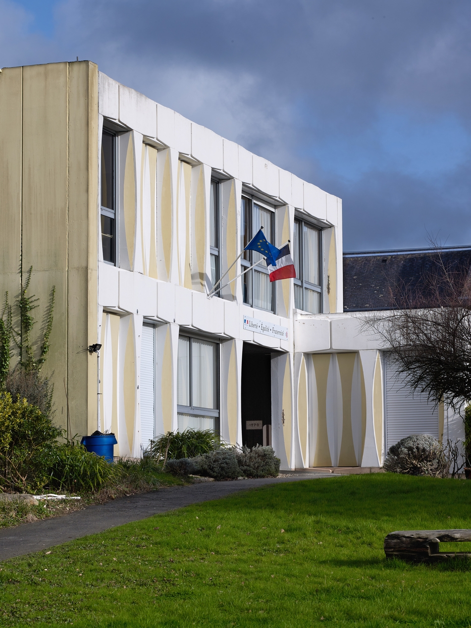 Les façades de l’administration et de l'infirmerie, prises du sud-ouest (Yves Guillou, architecte, 1980).Immatriculation