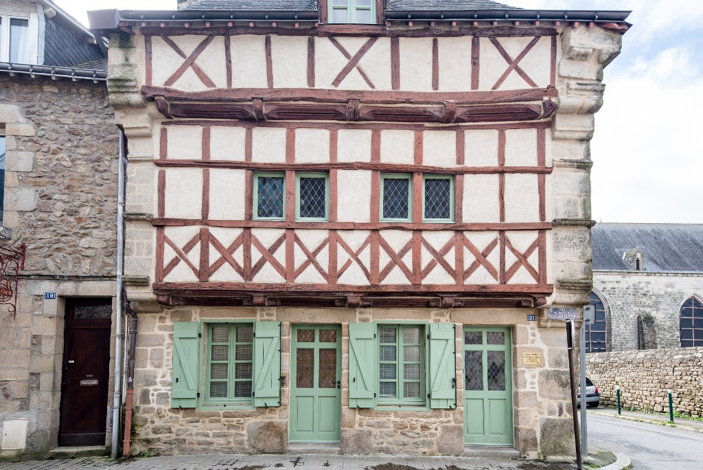 Seules quatre fenêtres sont ouvertes dans le pan de bois à l'étage. Il y en avait probablement sept à l'origine.Immatriculation