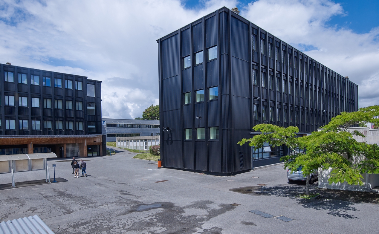 Vue d'ensemble prise du sud : de gauche à droite, bâtiment B, CDI, bâtiment C.Immatriculation