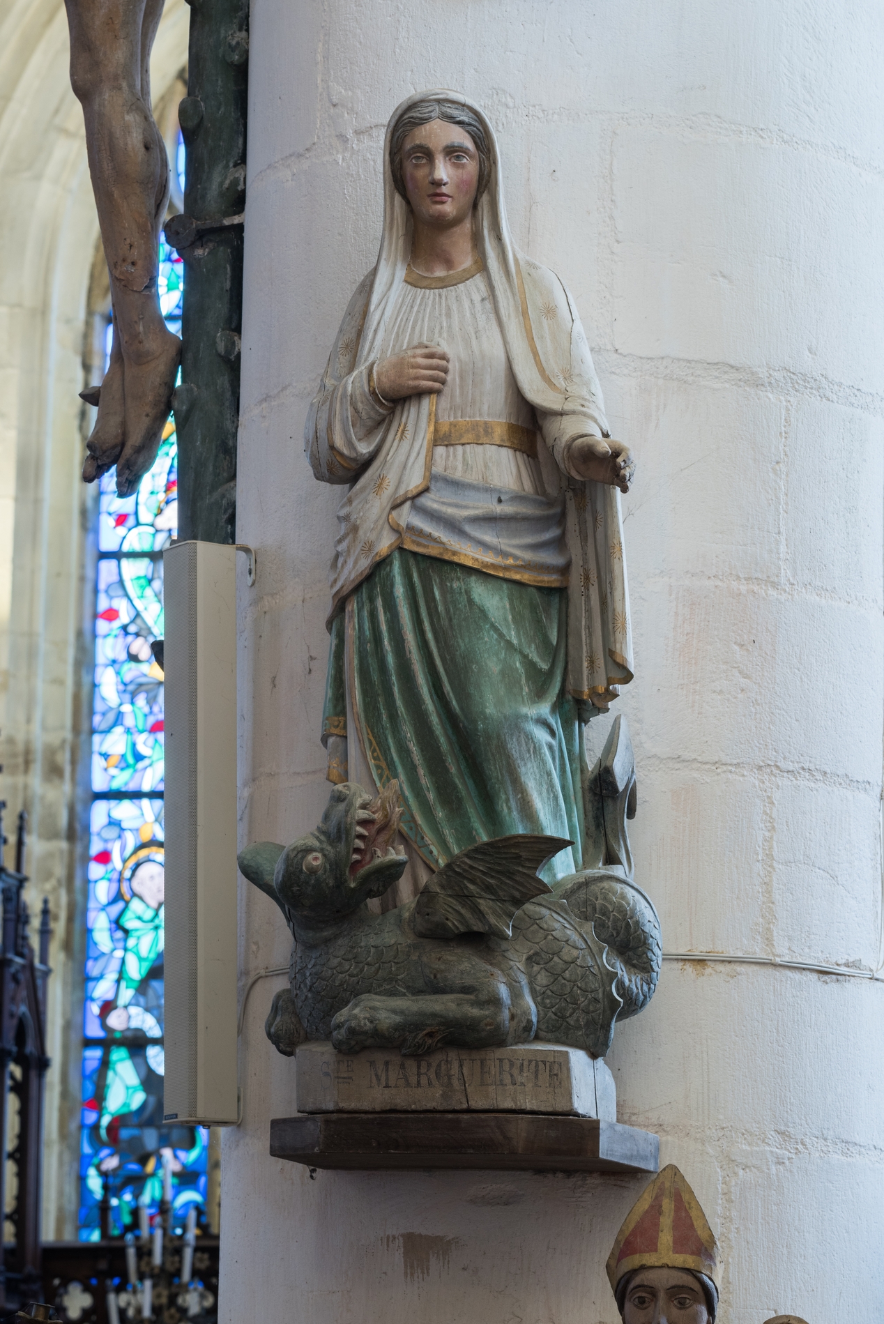 Vue d'ensemble : statue de sainte Marguerite.Immatriculation