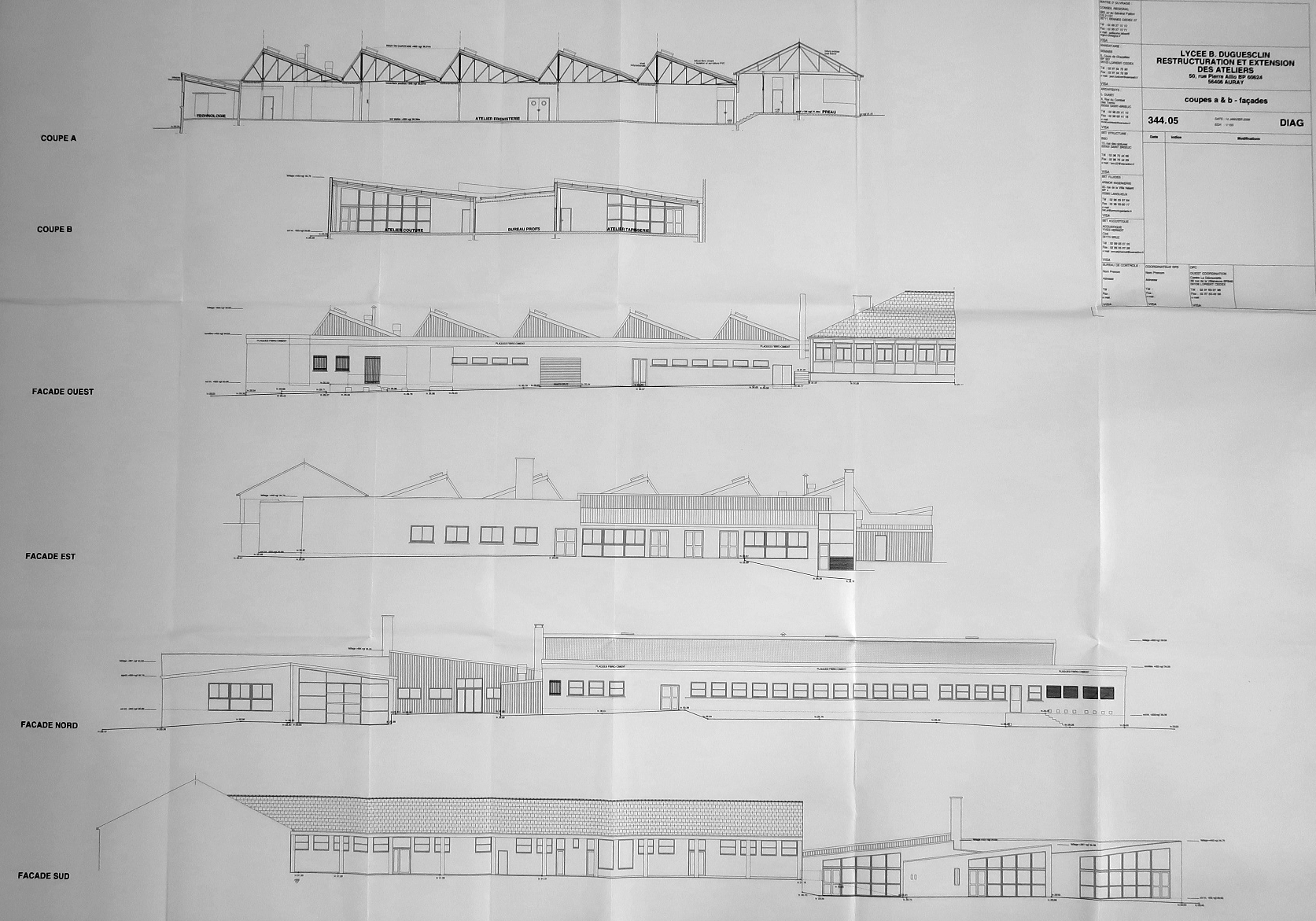 Projet de restructuration et extension des atelier (Lionel Dunet architecte, 2008) : élévations.Immatriculation