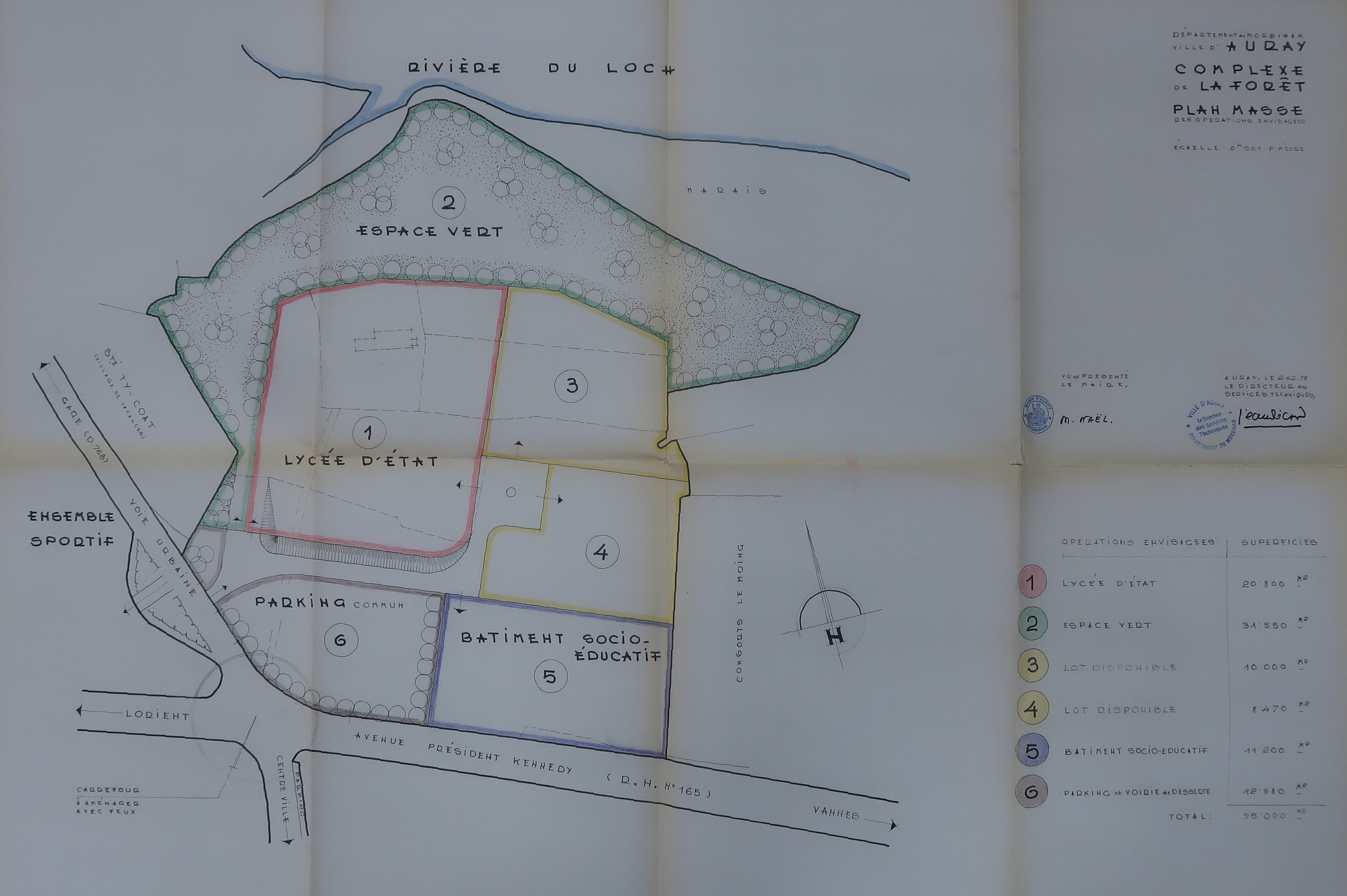 "Complexe de la Forêt. Plan de masse des opérations envisagées" établi par le directeur des services techniques, le 02 février 1978.Immatriculation