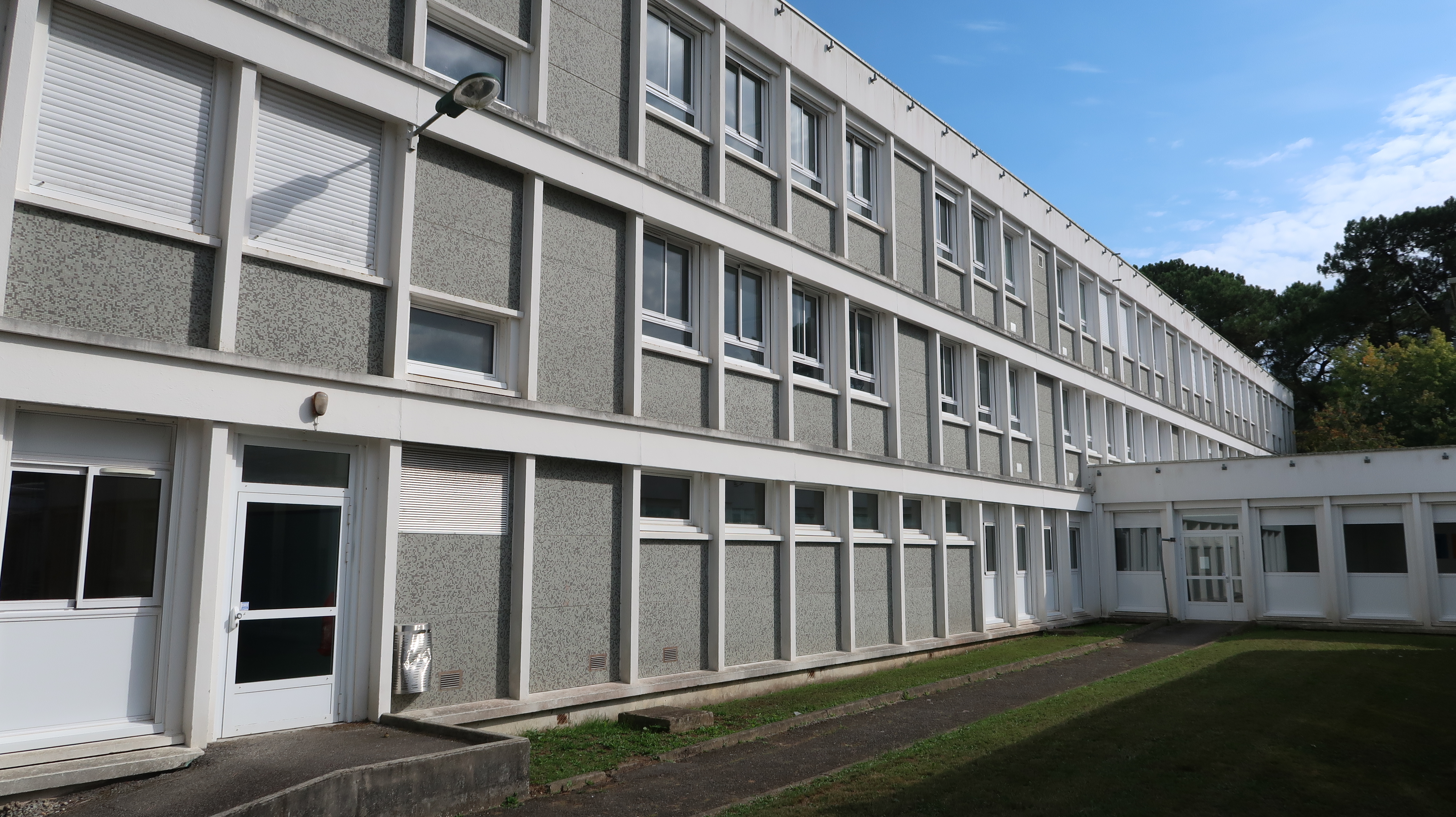 Internat, façade ouest. Yves Guillou, architecte, 1969.Immatriculation