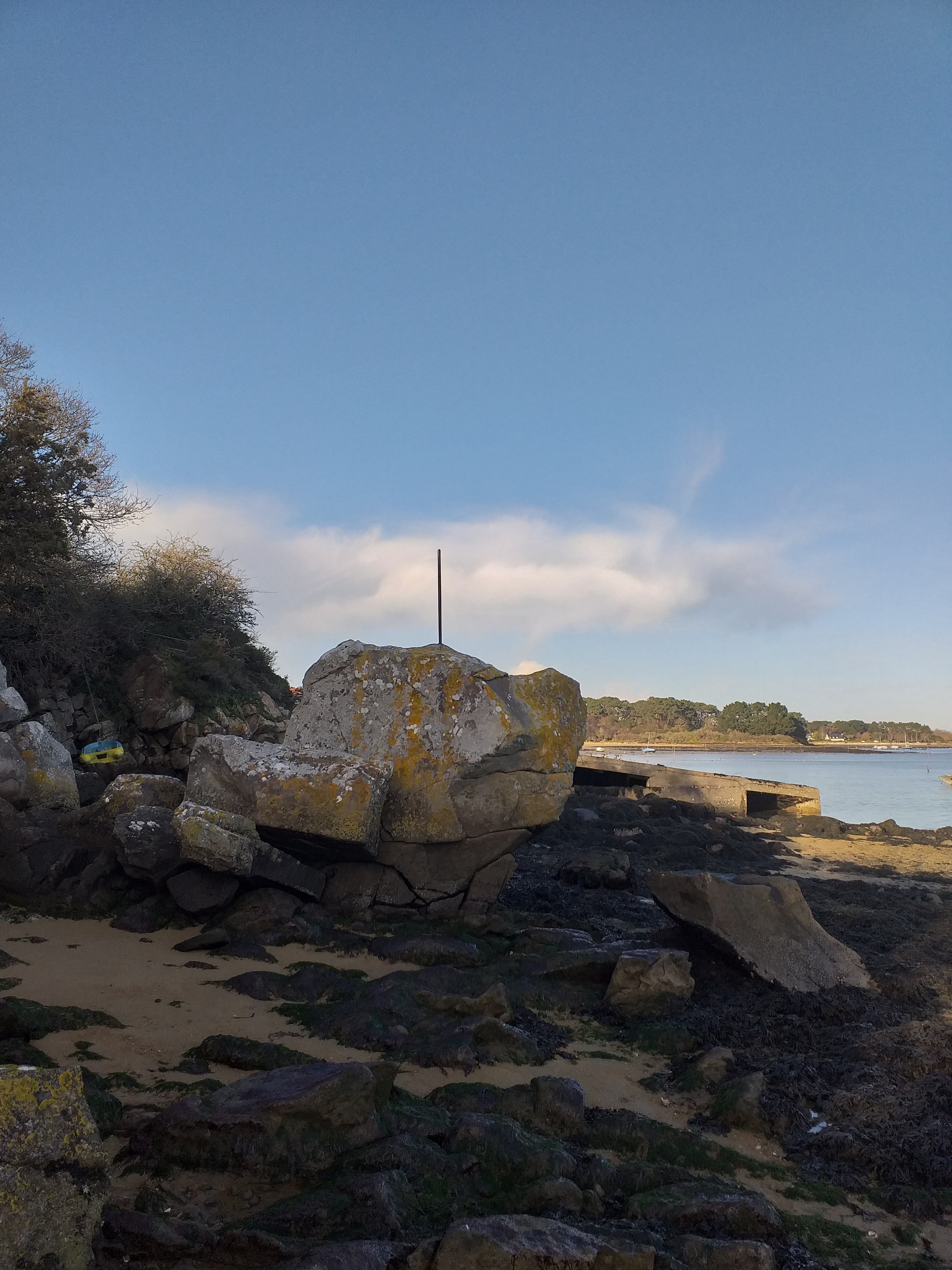 Ancien balisage scellé sur un rocher, Pointe de Locmiquel, BadenImmatriculation