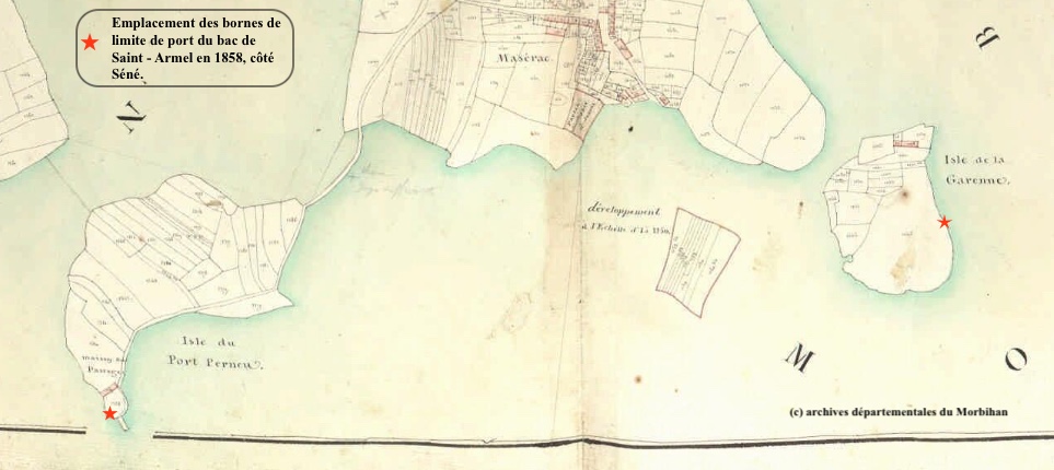 Extrait du cadastre napoléonien de Séné : passage par bac vers Saint-ArmelImmatriculation