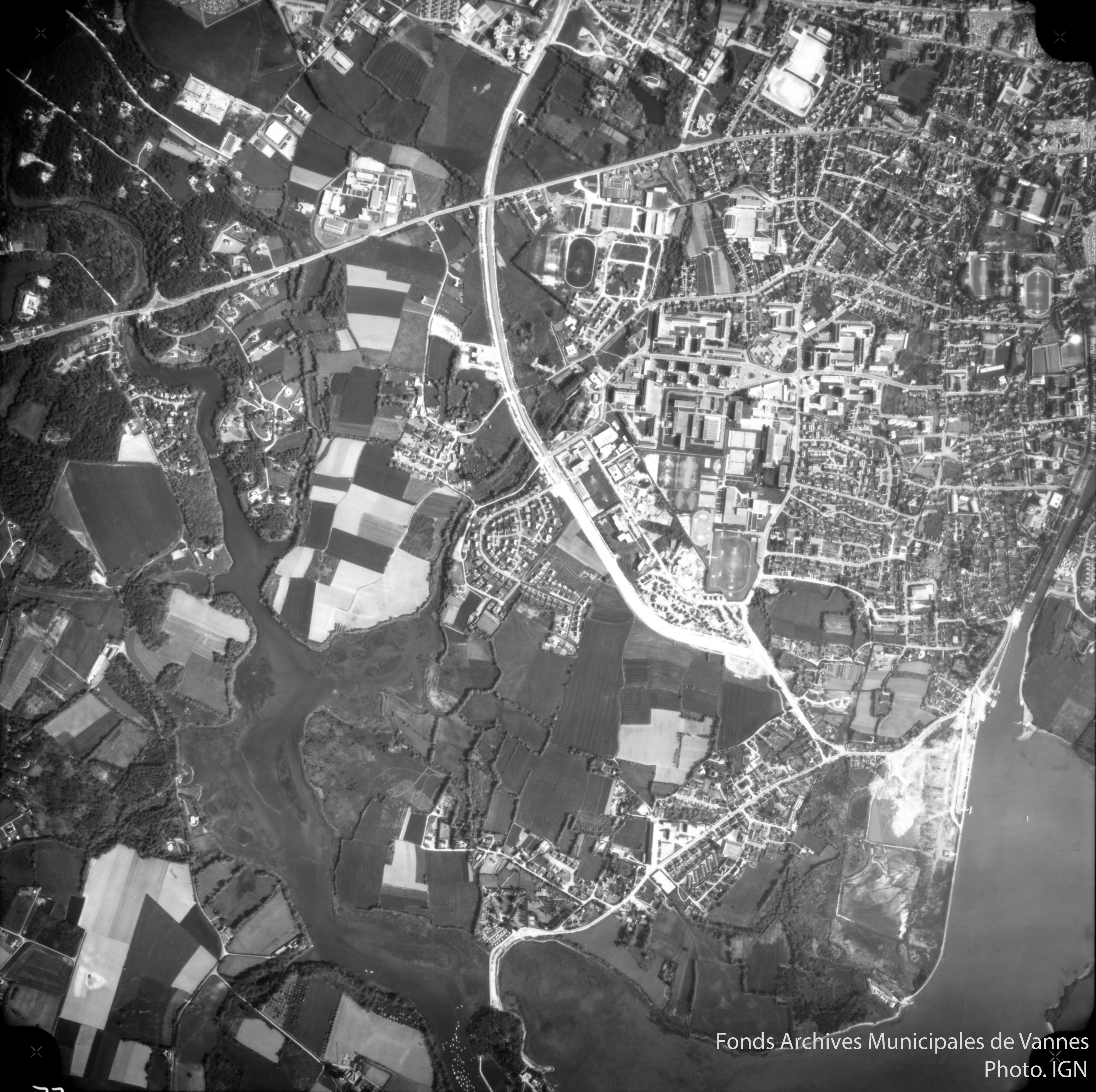 Vue aérienne de la zone de Cliscouët, 1978. Photo IGN. AM VannesImmatriculation