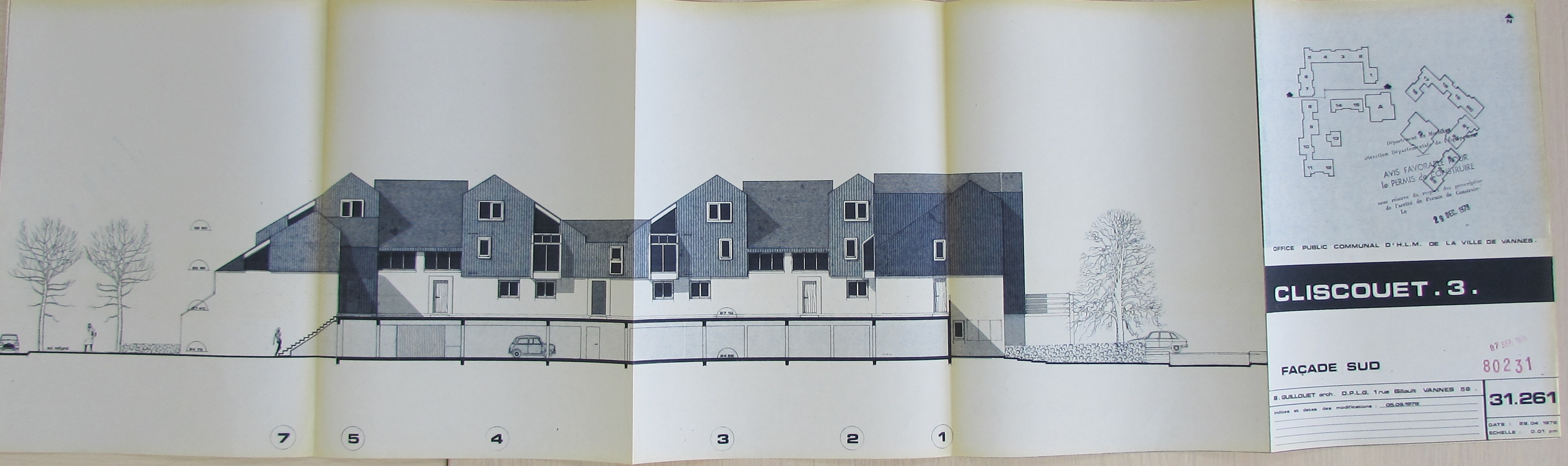 Avel Mor I : élévation façade sud, 1978 par Bernard Guillouët. AM Vannes 35 w 6853Immatriculation