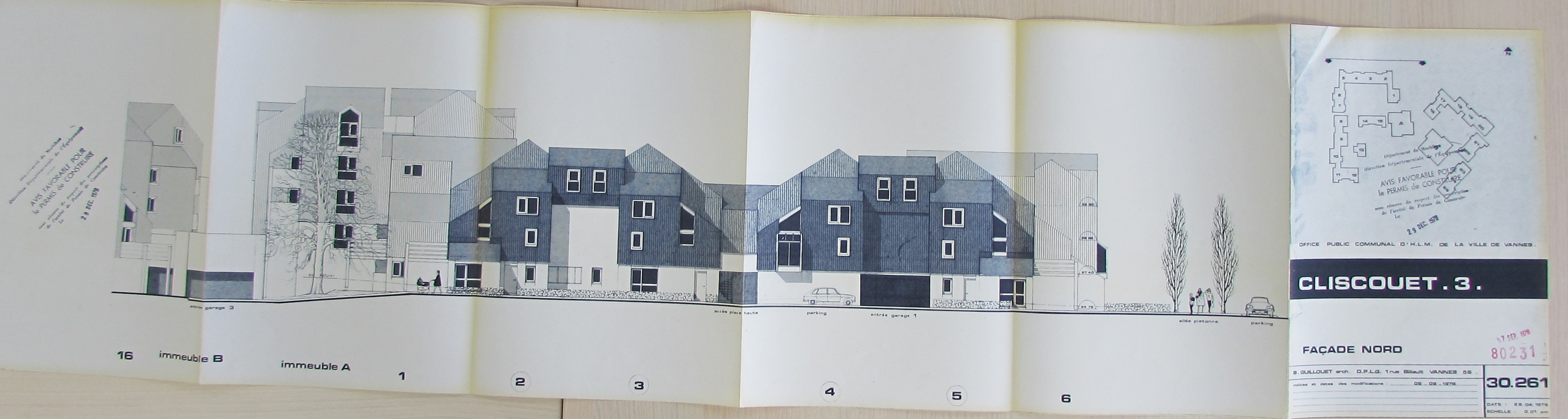 Avel Mor I : élévation façade nord, 1978 par Bernard Guillouët. AM Vannes 35 W 6853Immatriculation