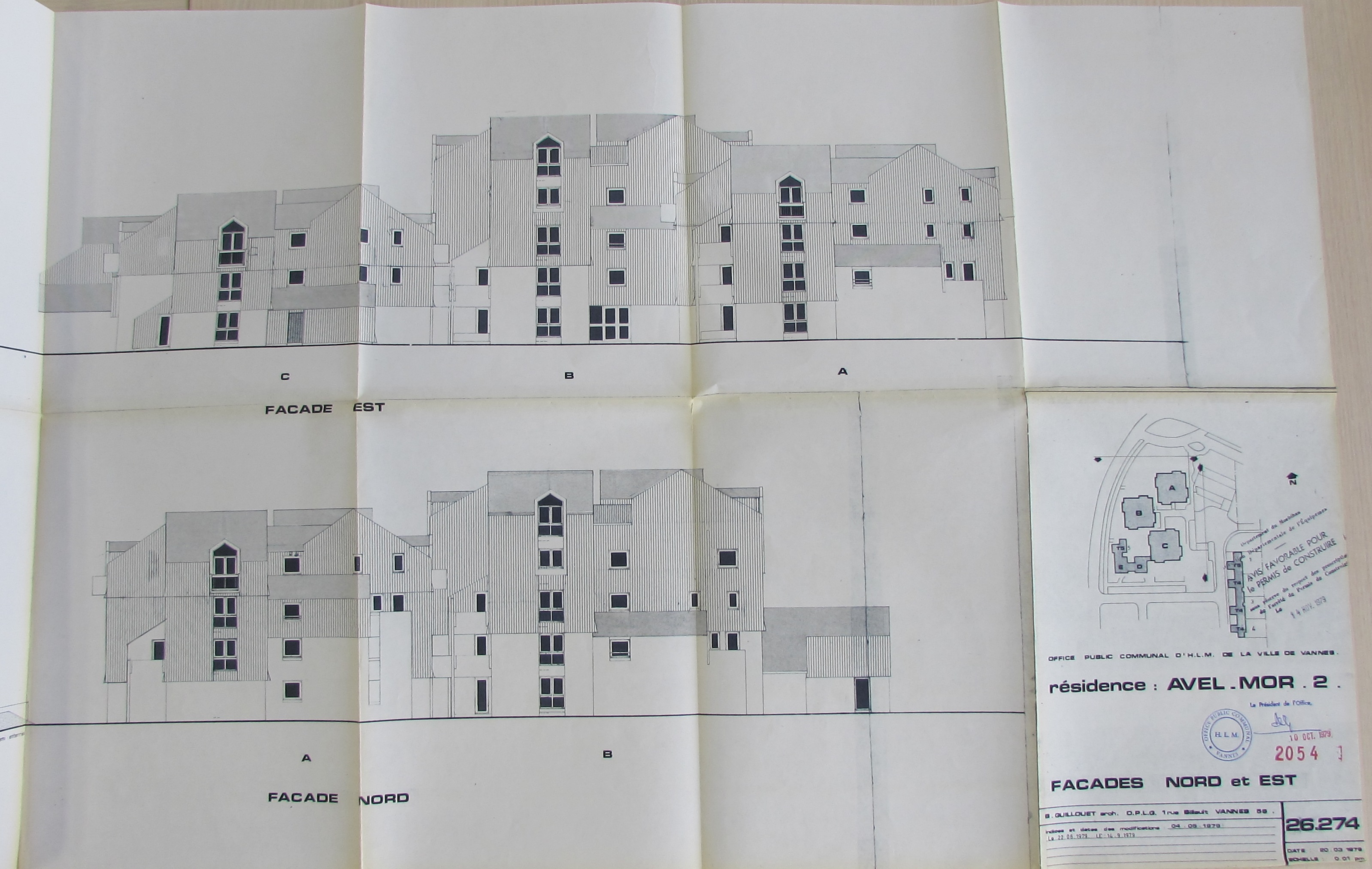 Avel Mor II : élévation façades nord et est, 1979 par Bernard Guillouët. AM Vannes 35 W 7062Immatriculation