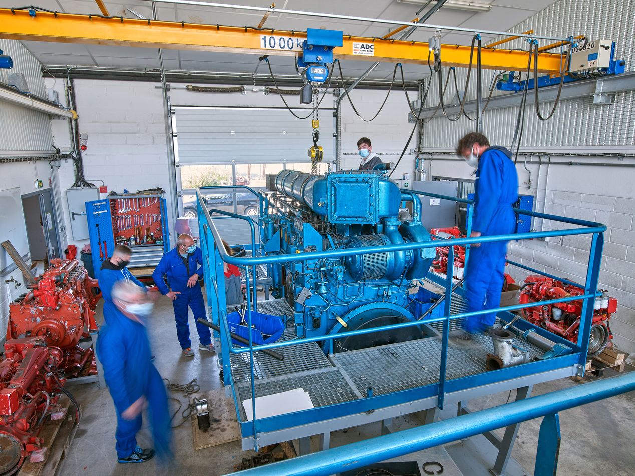 Ateliers, à Kerpalud. Vue intérieure de l'atelier moteurs.Immatriculation