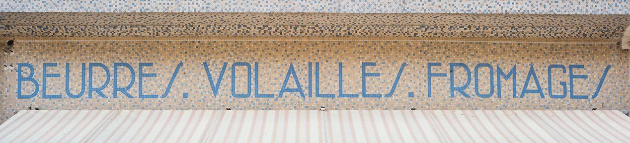 Enseigne de commerce en mosaïque, vue de détail (2021)Immatriculation