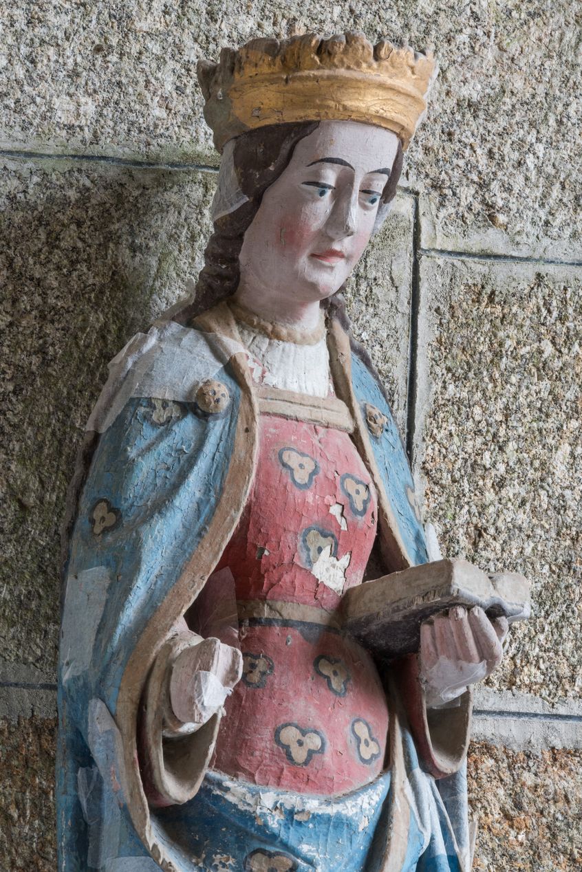 Statue (d'applique, petite nature) : sainte Catherine d'Alexandrie, église paroissiale Notre-Dame (Kergrist-Moëlou),