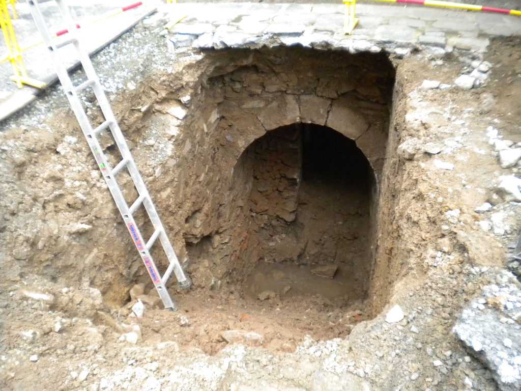 A l'angle sud-ouest de la maison, entrée de la cave. Vue générale prise lors de travauxImmatriculation