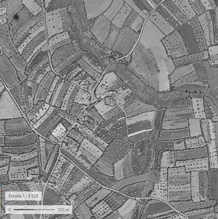 Vues aérienne de l’enclos grangier de Saint-Sulien dans les années 1950Immatriculation