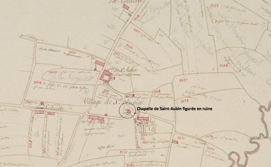 Le village et la chapelle de Saint-Aubin, plan de la fin du 18e siècle (1783)Immatriculation