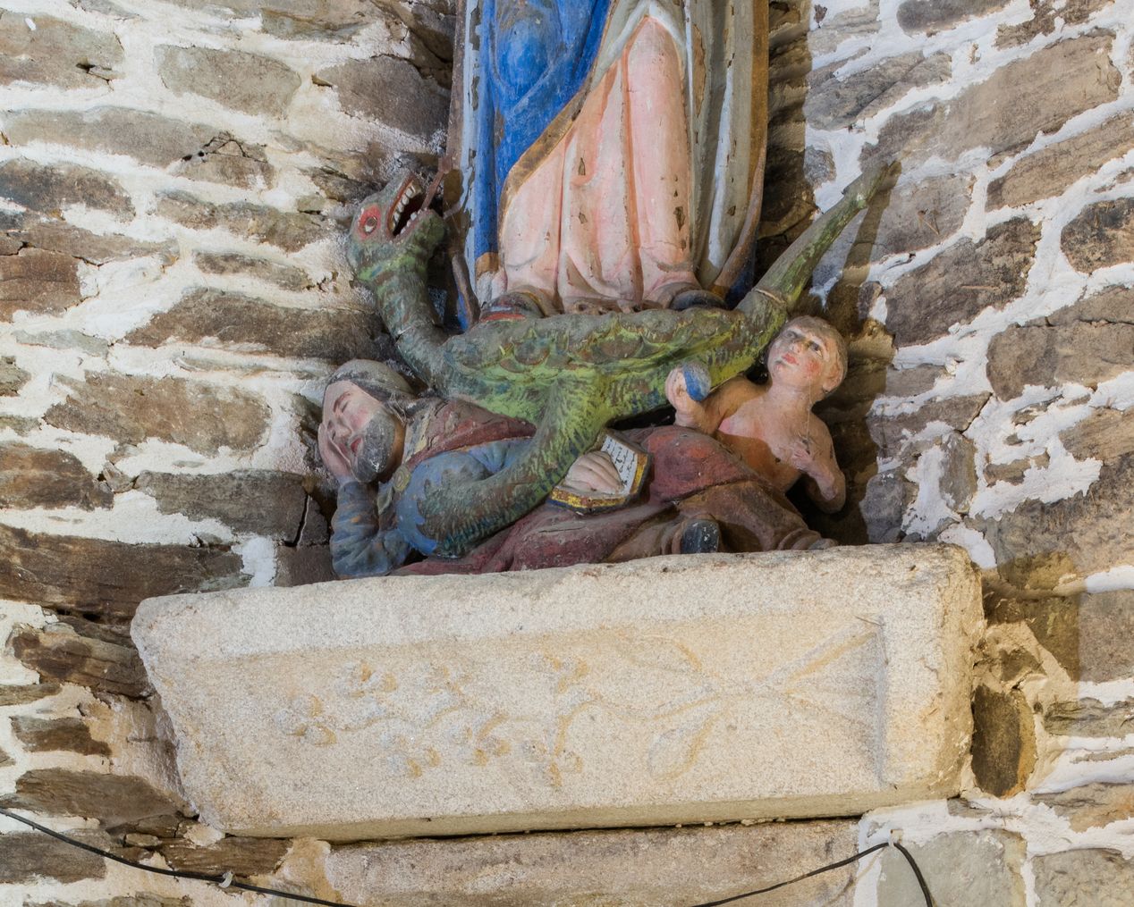 Vue de détail : le dragon, Jessé et Eve, en partie basse de la statue de Vierge à l'EnfantImmatriculation