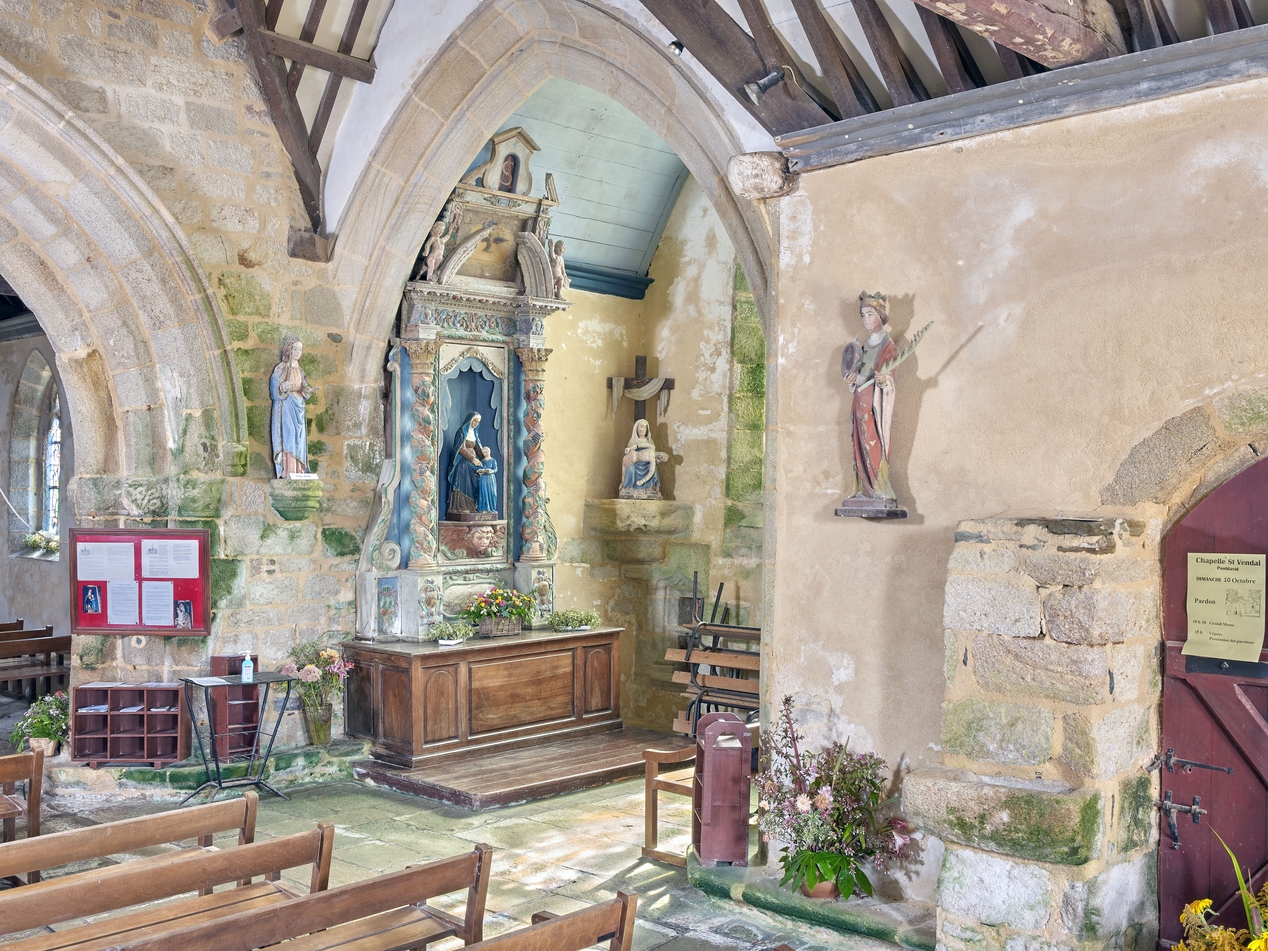 Statue (d'applique, petite nature) : sainte Catherine d'Alexandrie, chapelle Notre-Dame de Penhors (Pouldreuzic),