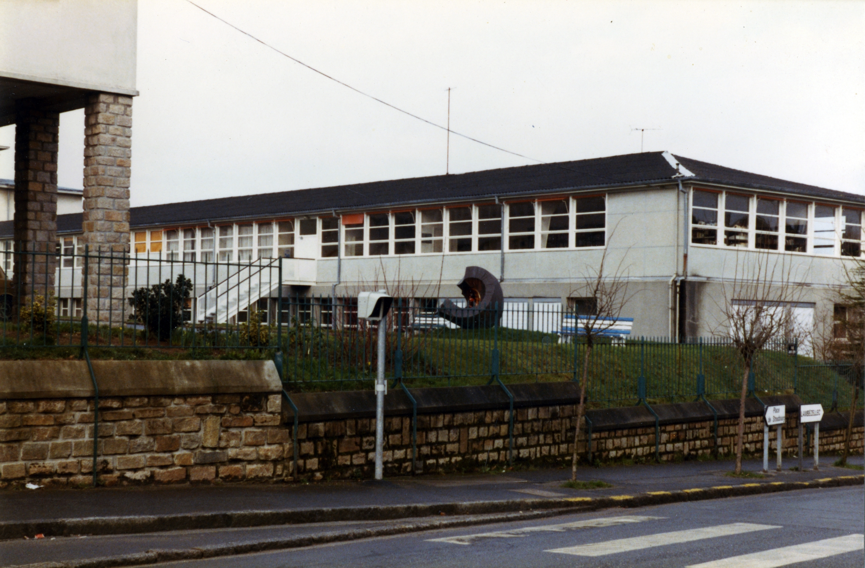 La géode, sculpture d'Yslav, décoration du lycée Jules Lesven, avant sa disparition : vue de situation.Immatriculation