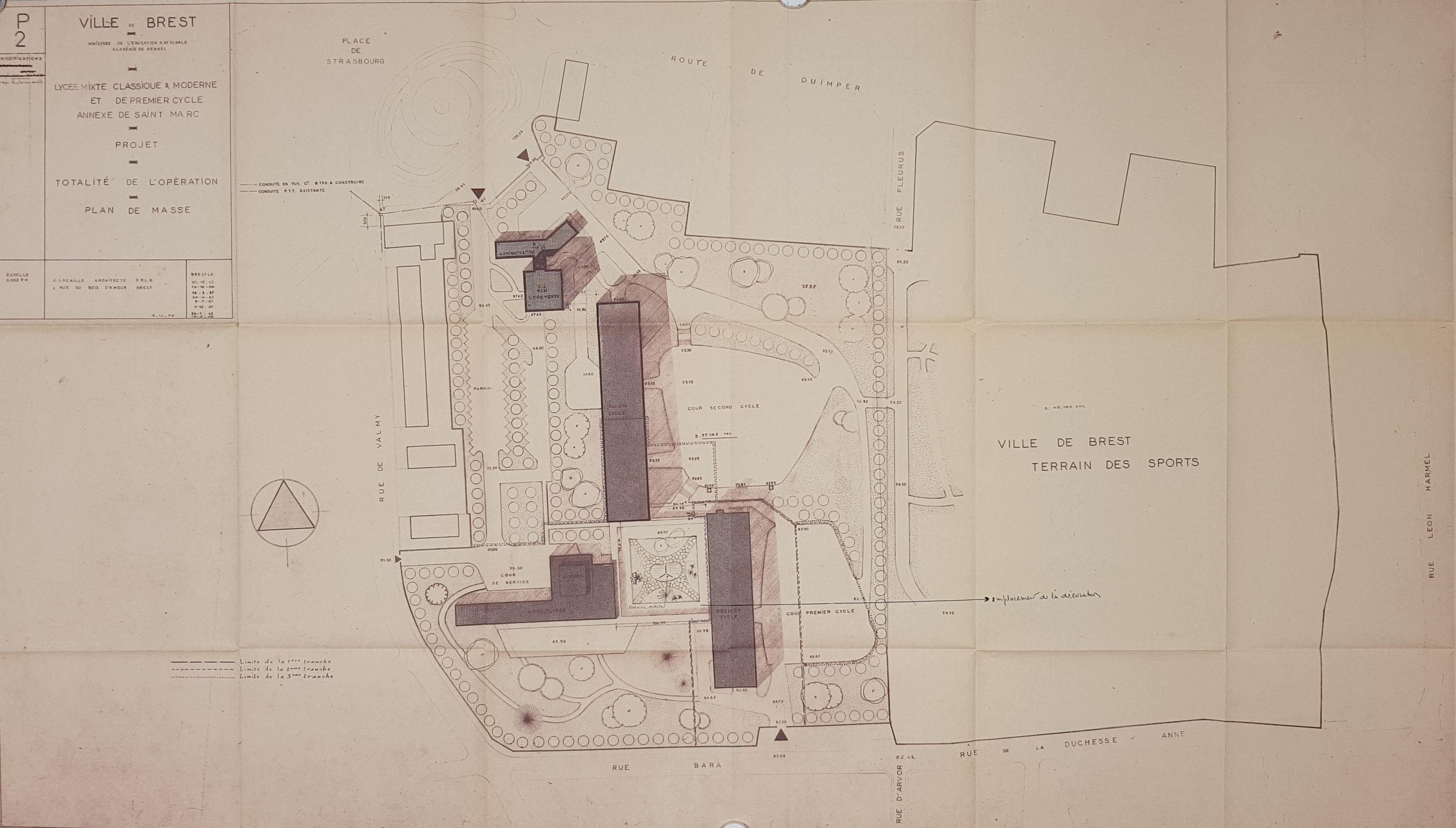 "Plan de masse. Totalité de l'opération", 8e modification du 9/12/1970. Jean Lacaille, architecte.Immatriculation