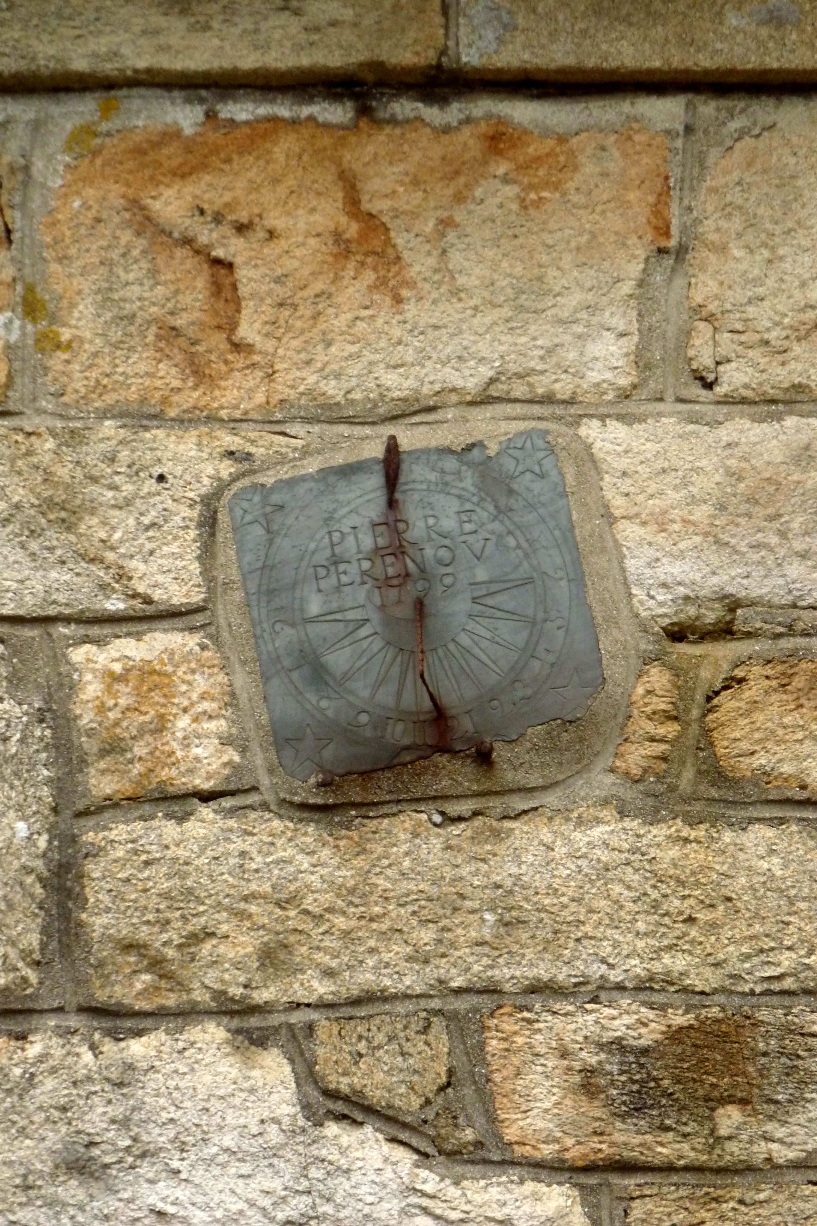 Beuzec-Cap-Sizun, ferme. Cadran solaire daté 1799 sur la façade antérieure du logis. Inscription : PIERRE PERENOV. (2021)Immatriculation