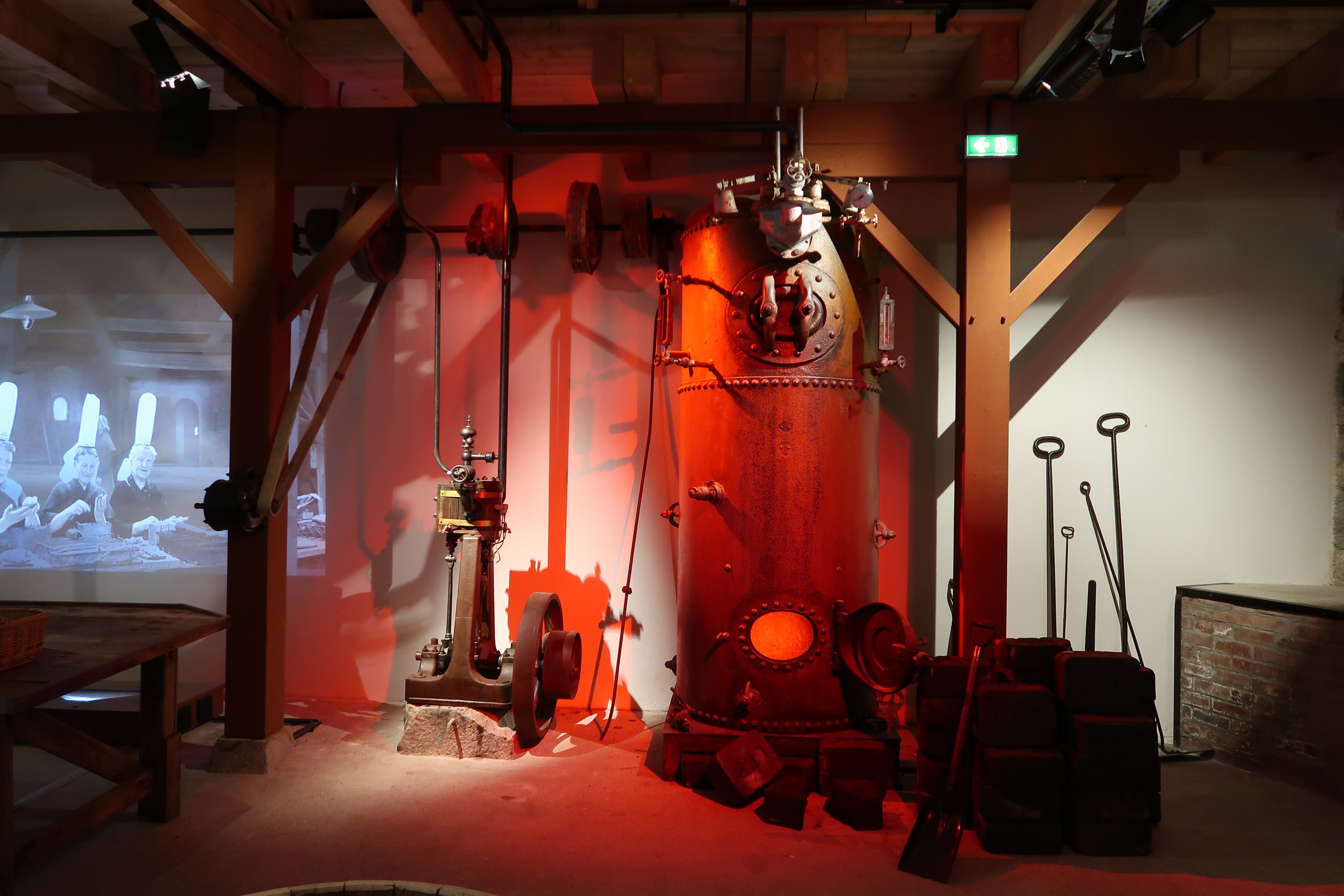 Chaudière verticale à tubes de la marque FIELD reliée à la machine de transmissionImmatriculation