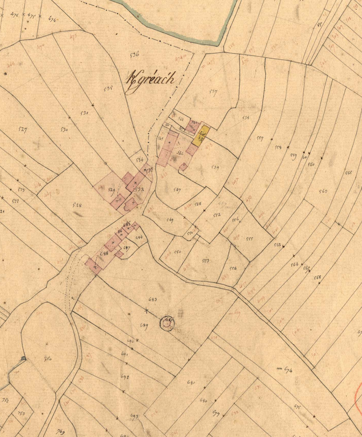 Kergréac'h et moulin. Section I 2 de Loquéran du cadastre de Plouninec, 1836.Immatriculation