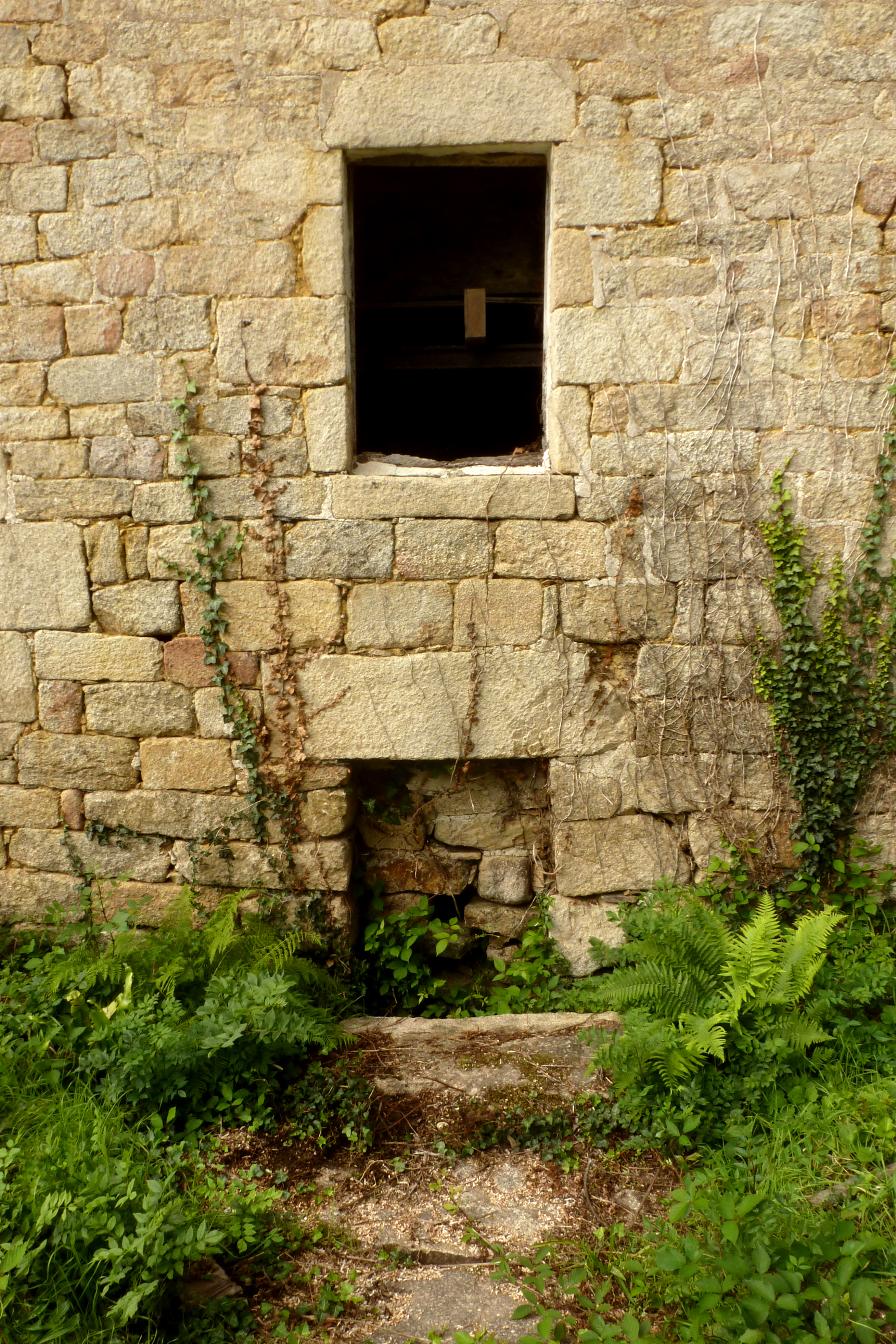 Alignement logis - moulin. détail de la sortie de l'eau du moulin. (2021)Immatriculation