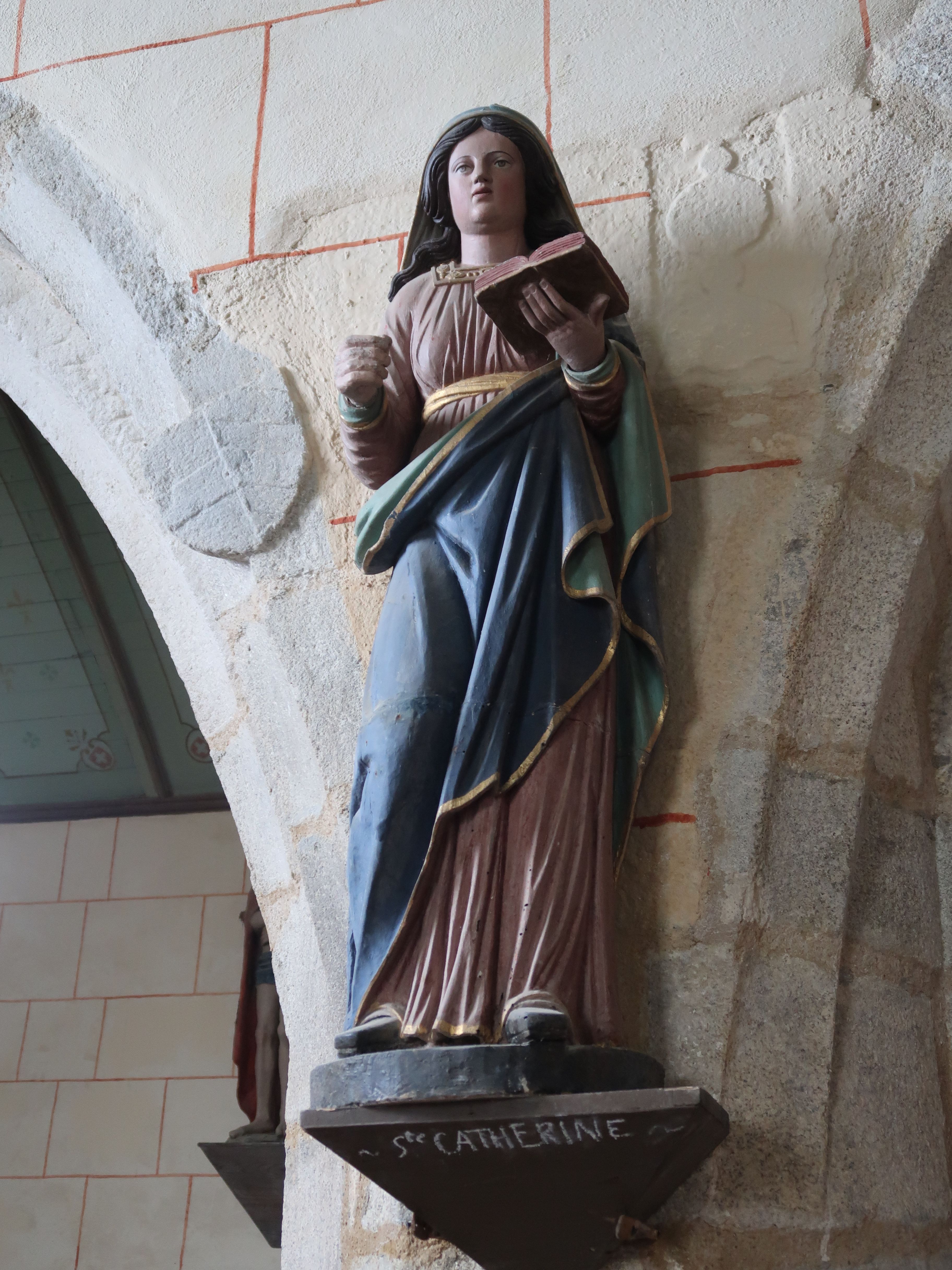 Statue : sainte Catherine d'Alexandrie, église paroissiale Saint-Agapit (Plouégat-Guérand),