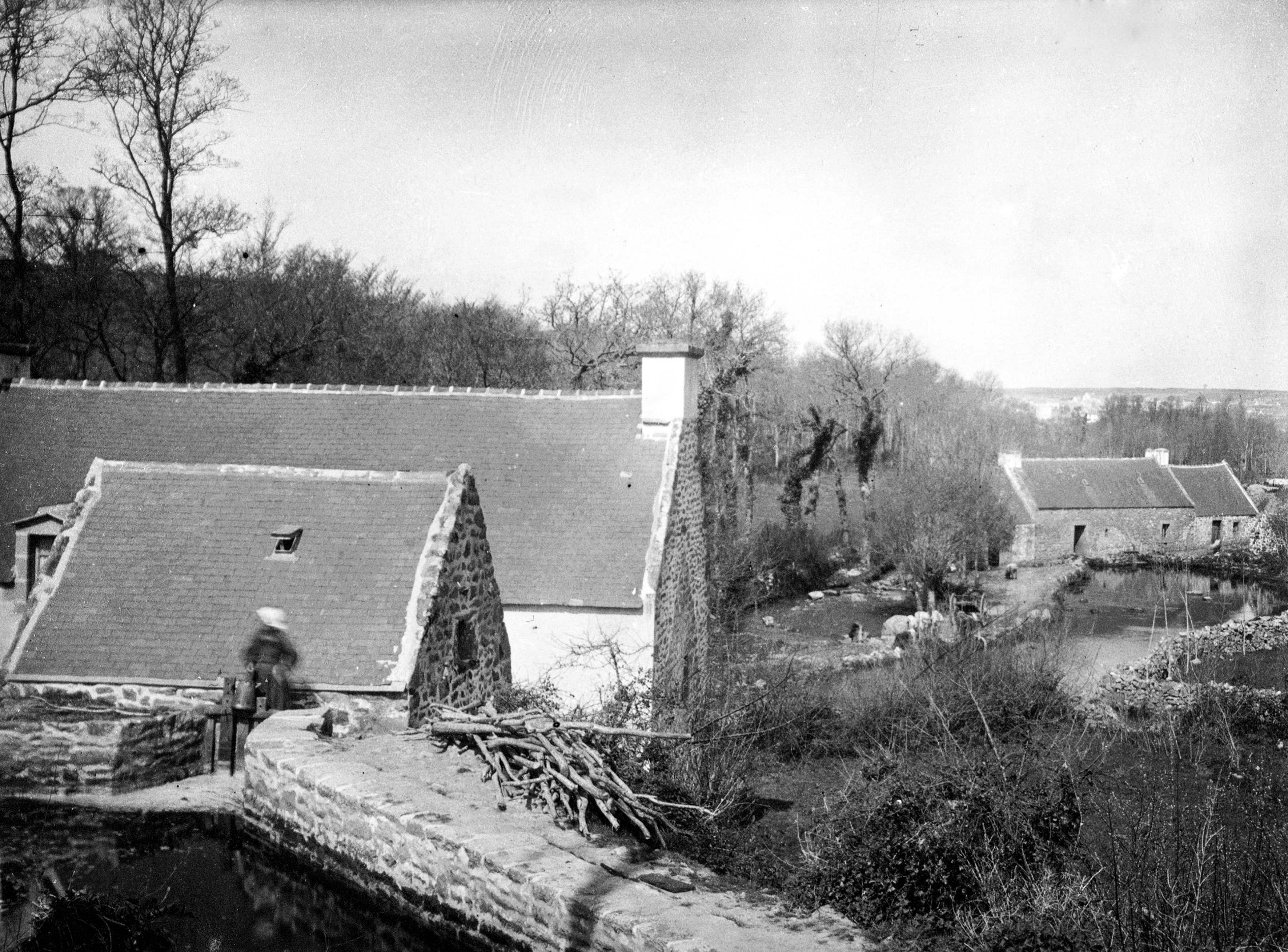 Vue générale prise de Meil Pors en Plouhinec (premier plan). Meil Pry en arrière plan. Reproduction plaque de verre vers 1900.Immatriculation